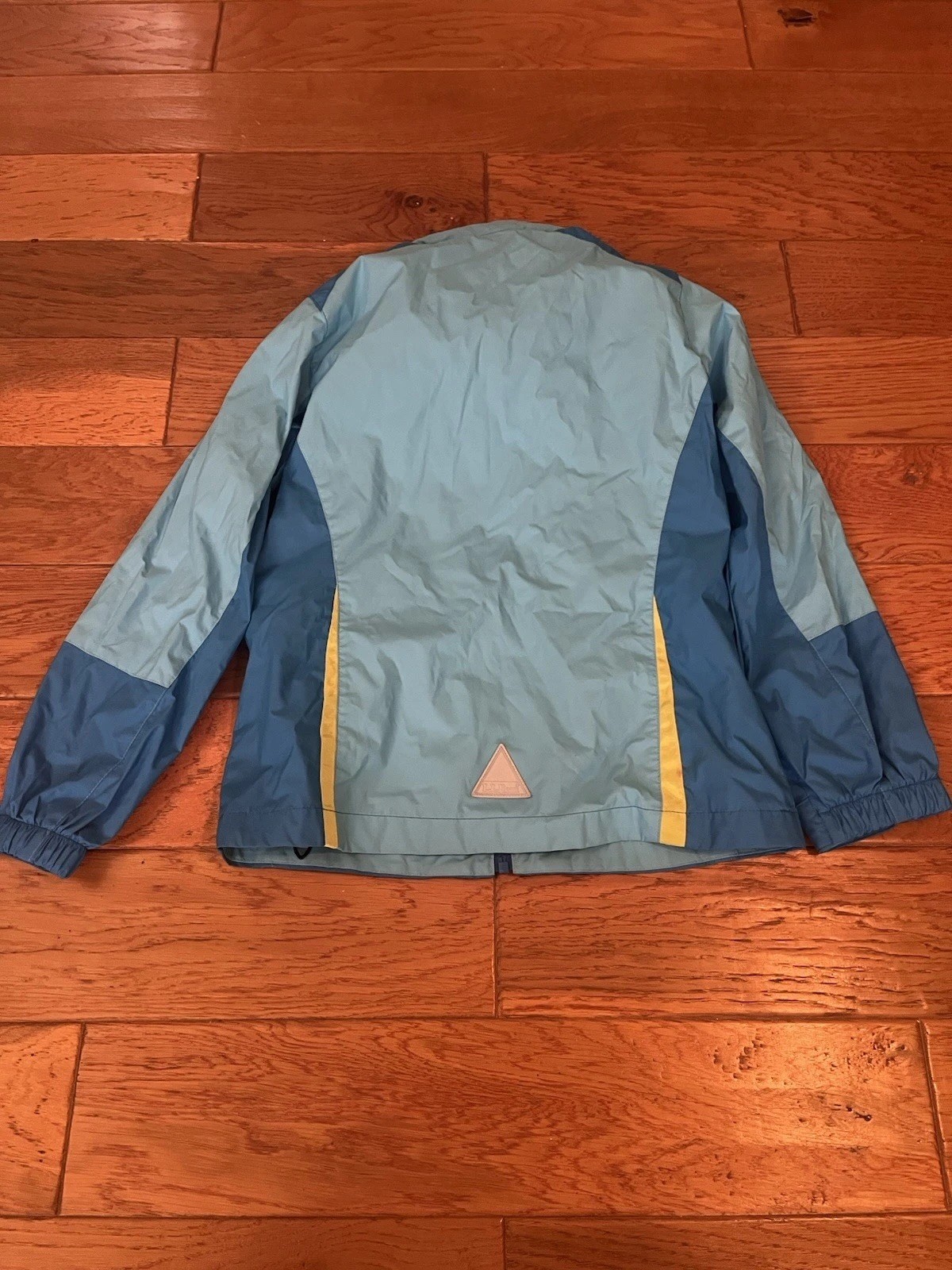 как выглядит L.L.Bean Kids Trail Model Rain Jacket in a colorblock blue design 10/12 фото