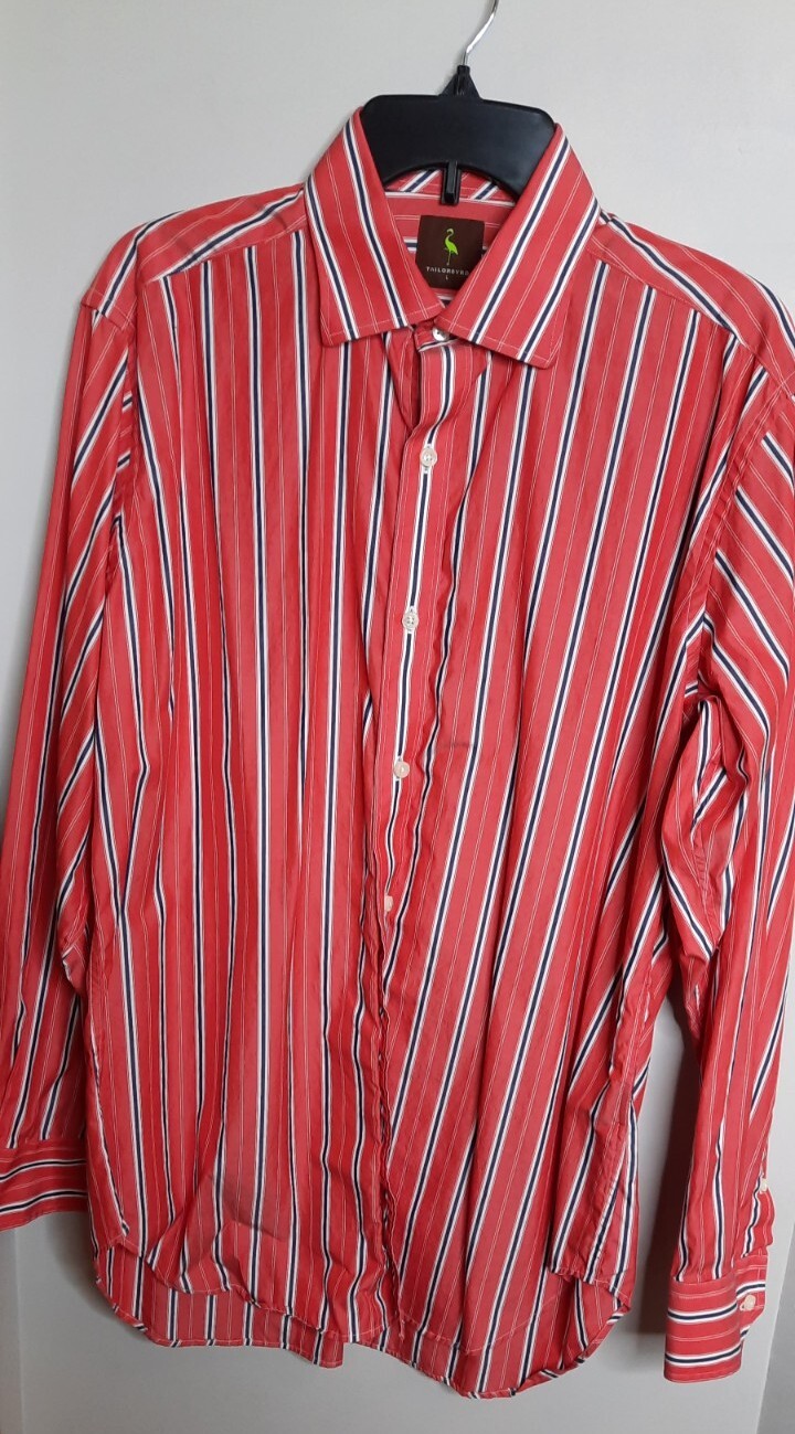 Tailorbyrd Mens Button Up Dress Shirt Size L Orange Red Striped Office Career