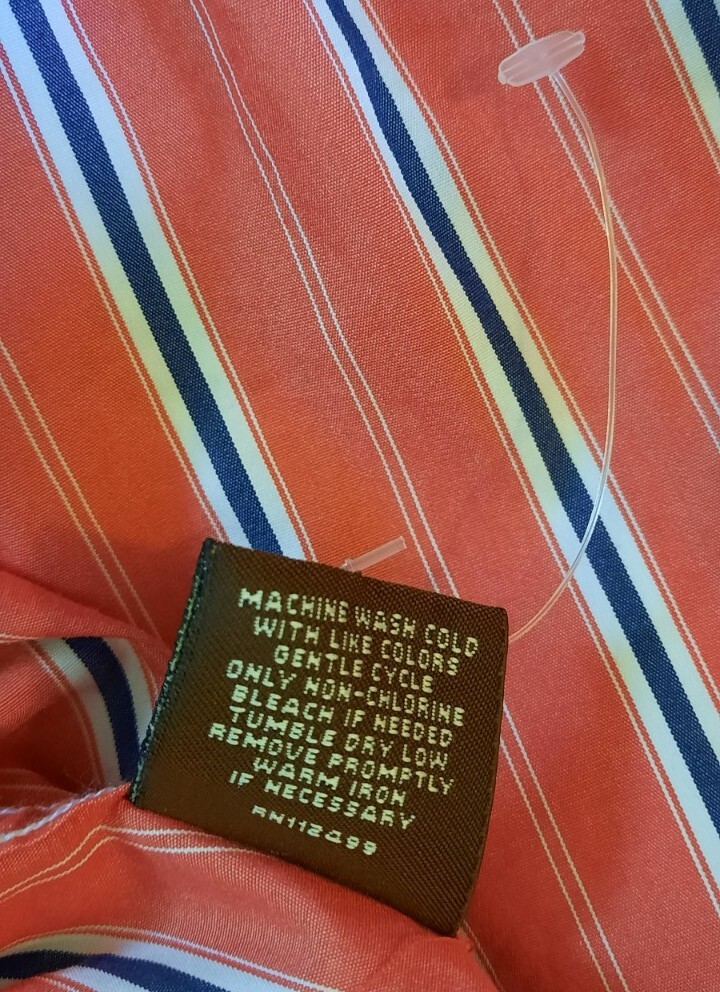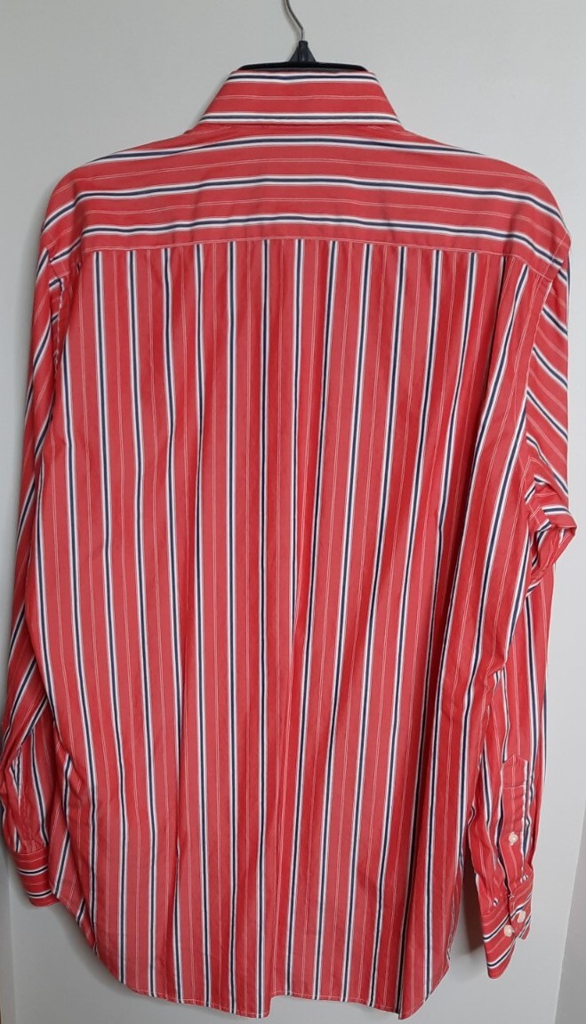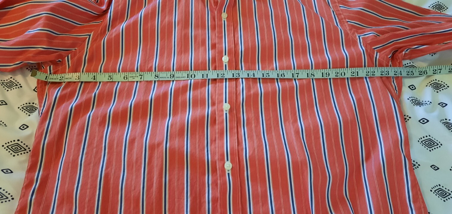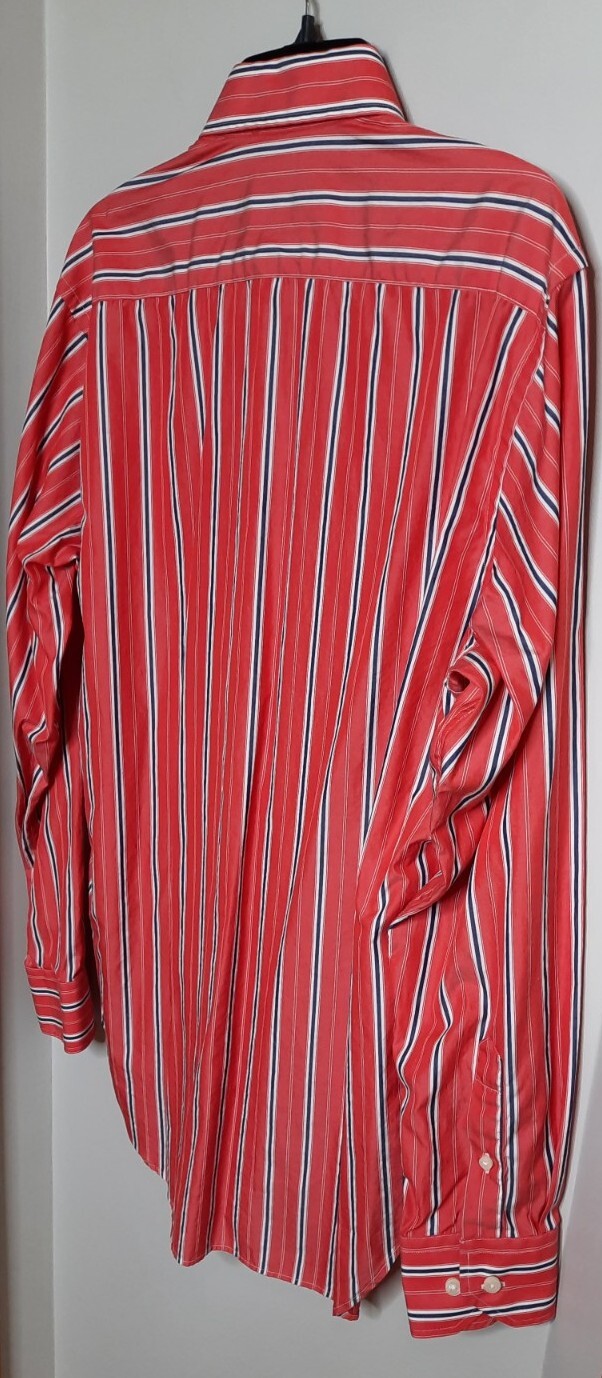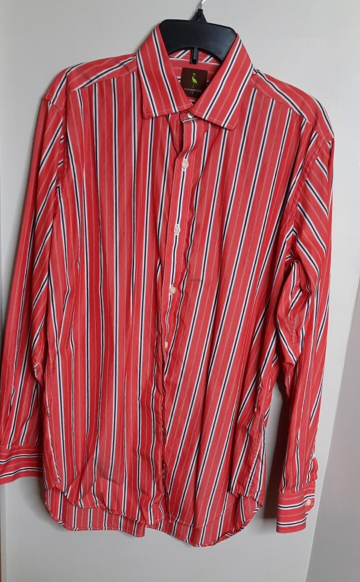 как выглядит Tailorbyrd Mens Button Up Dress Shirt Size L Orange Red Striped Office Career фото