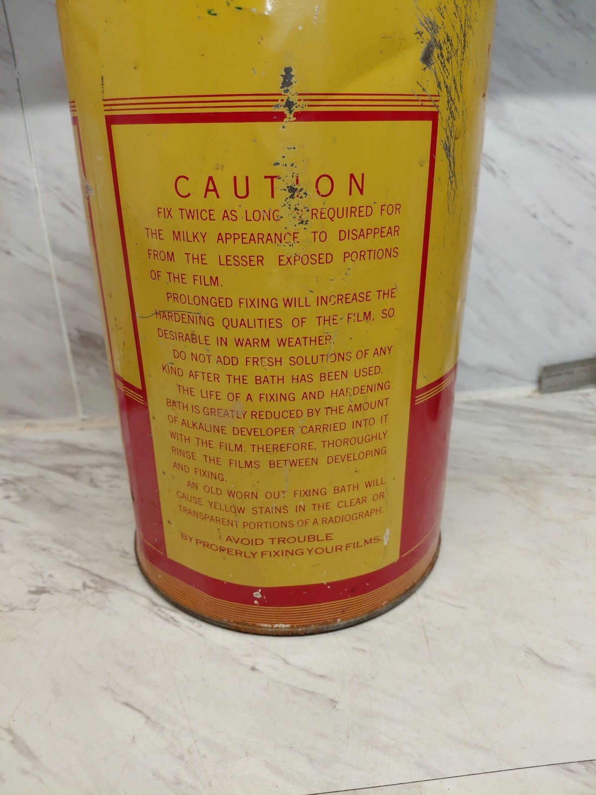 VINTAGE Buck X-ray FIXER TIN METAL CAN 5 Gallon size 4,x Ray Films/dental Film