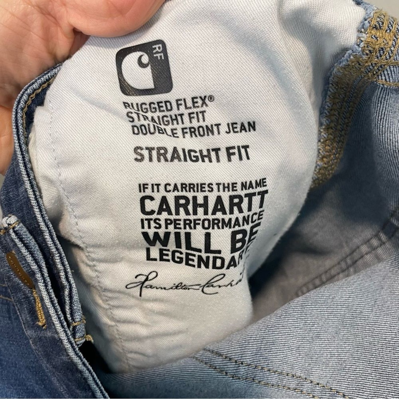 как выглядит Carhartt Womens Rugged Flex Relaxed Fit Double-Front Jean Straight Leg Size 14 фото