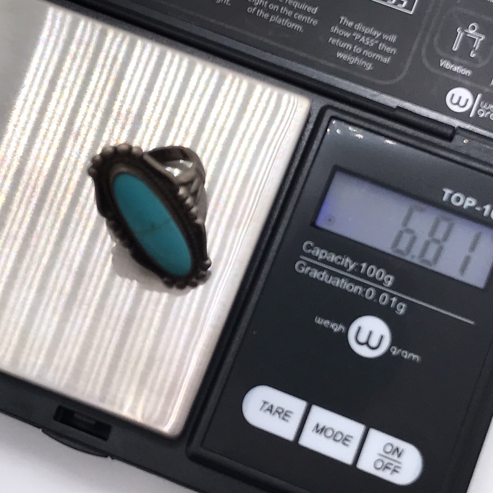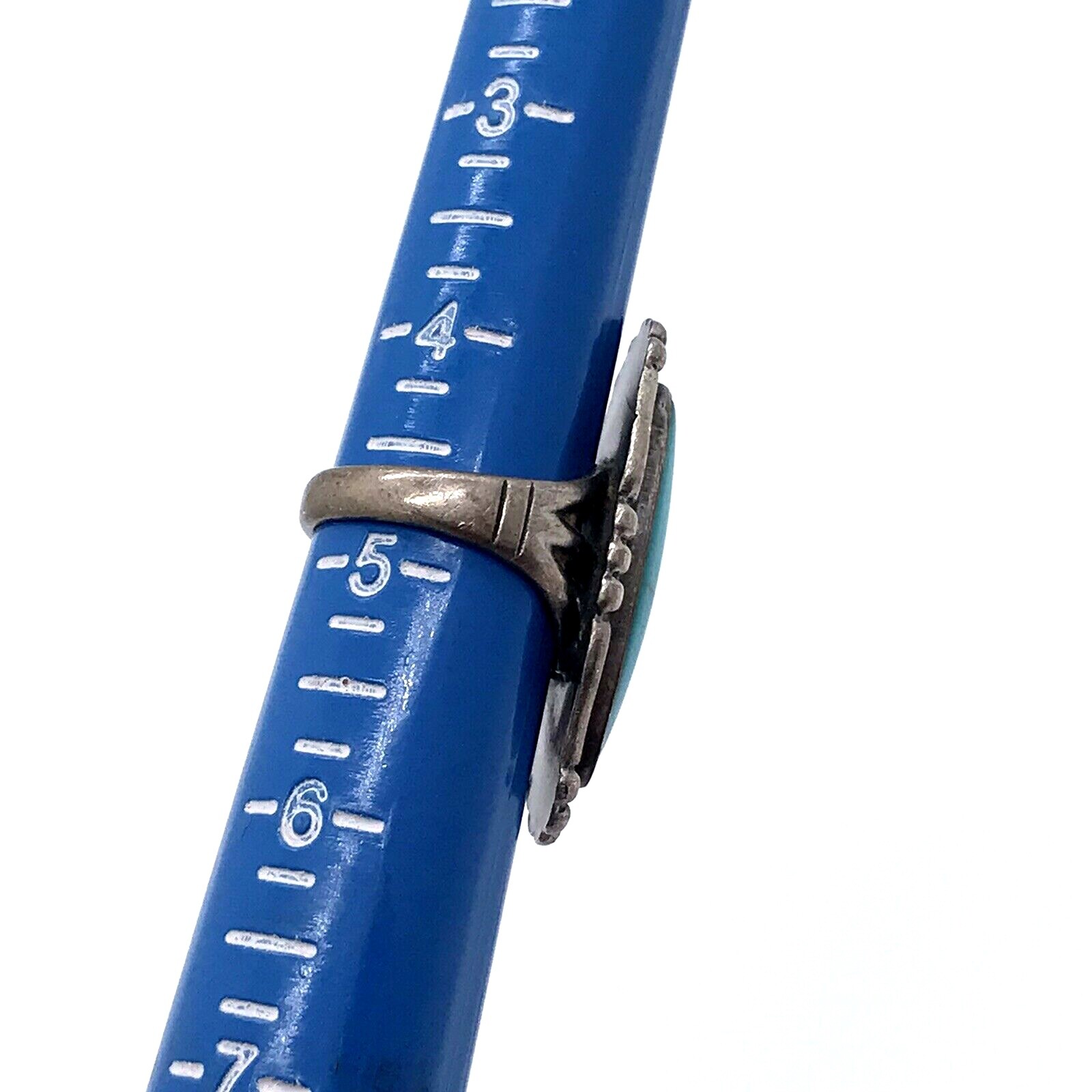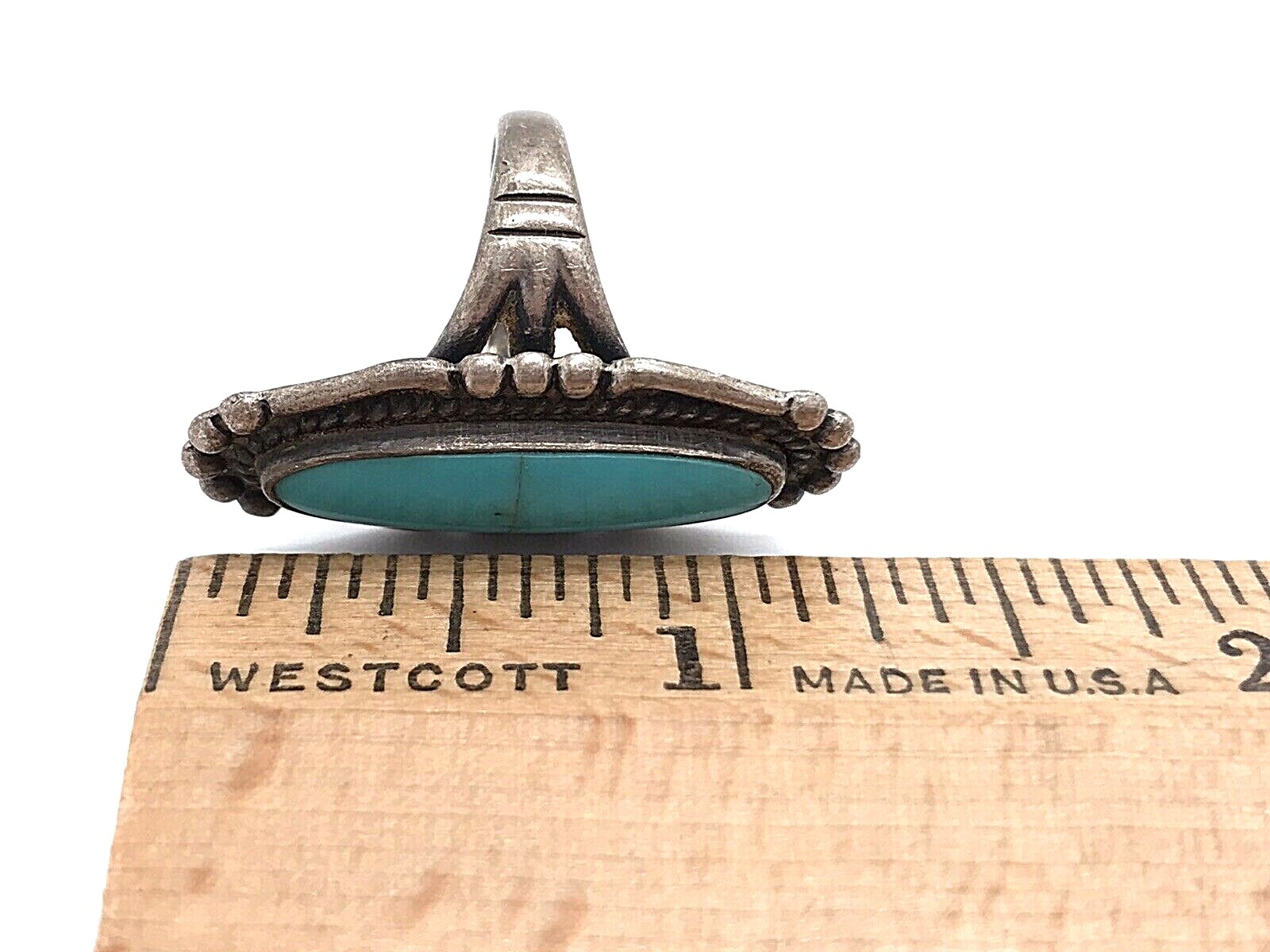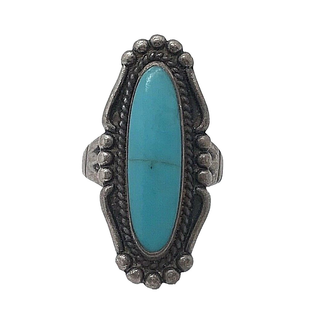 VTG Turquoise Ring Sterling Silver Long 1.25 Oval Stone NM Southwest Size 4.75