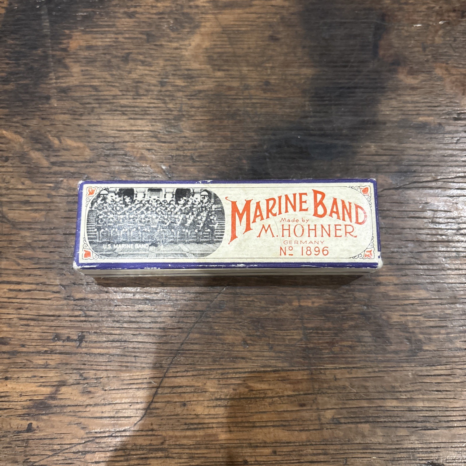 Vintage M Hohner Marine Band Harmonica Key of G 1896 w/Cardboard Case Box