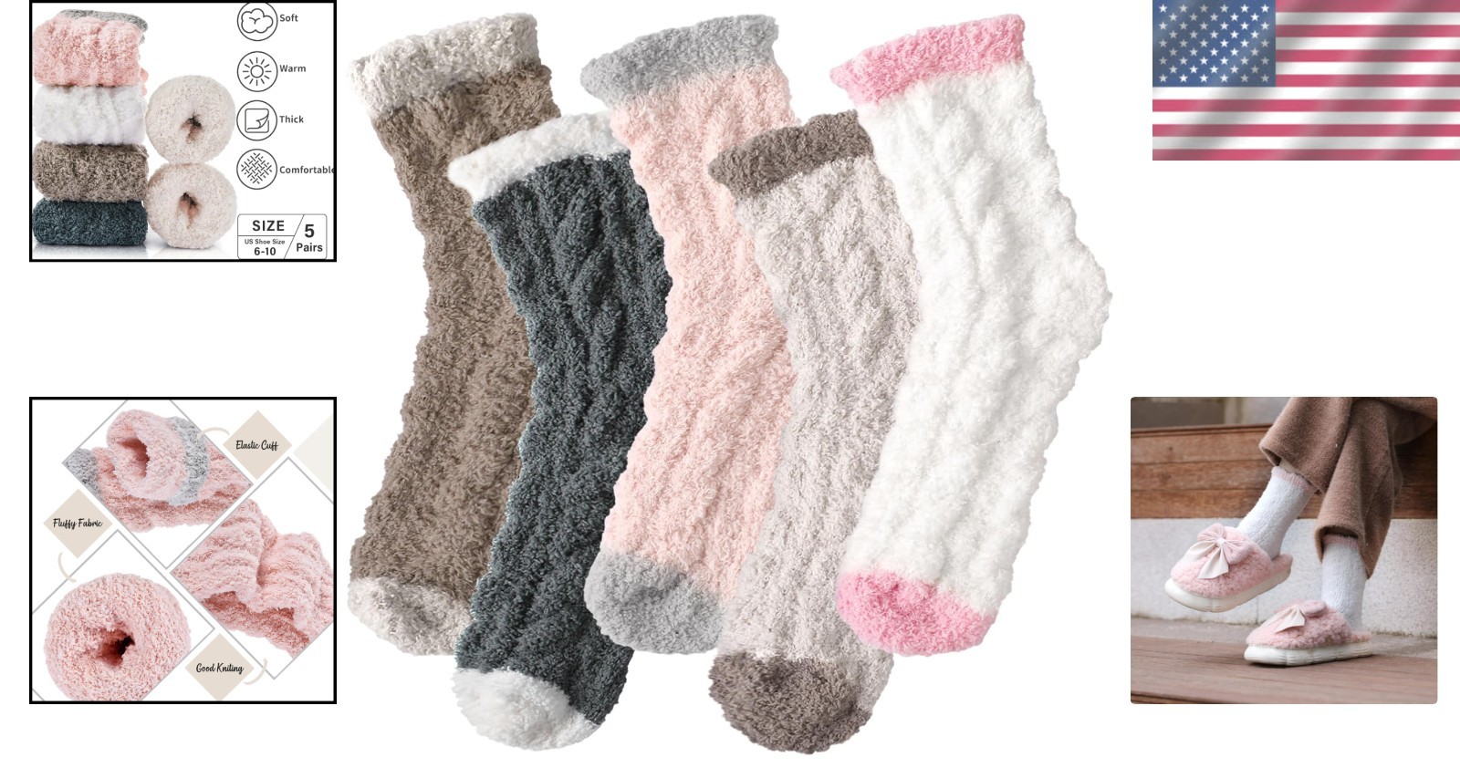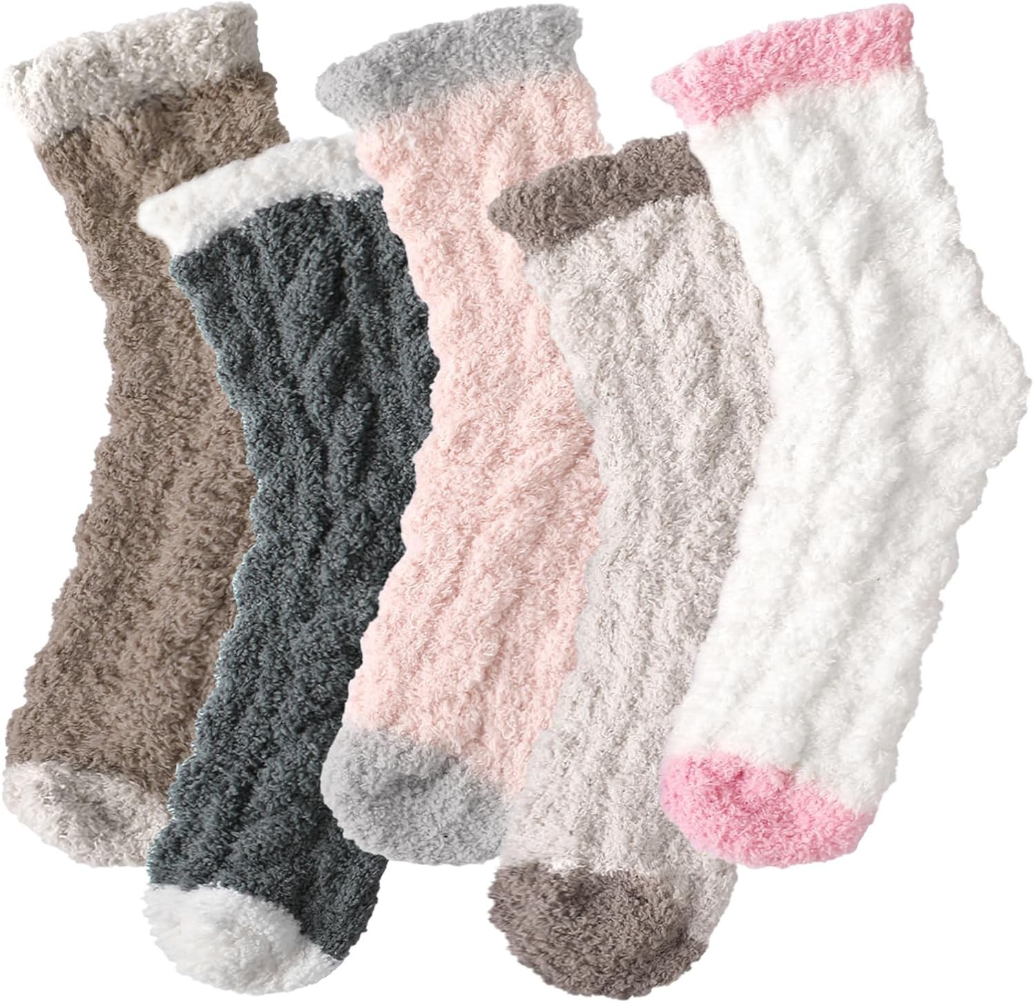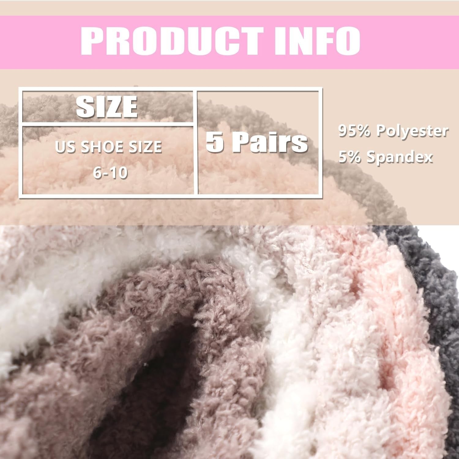 5 Pairs of Luxurious Fuzzy Winter Socks for Women - Warm Cozy Slipper Socks