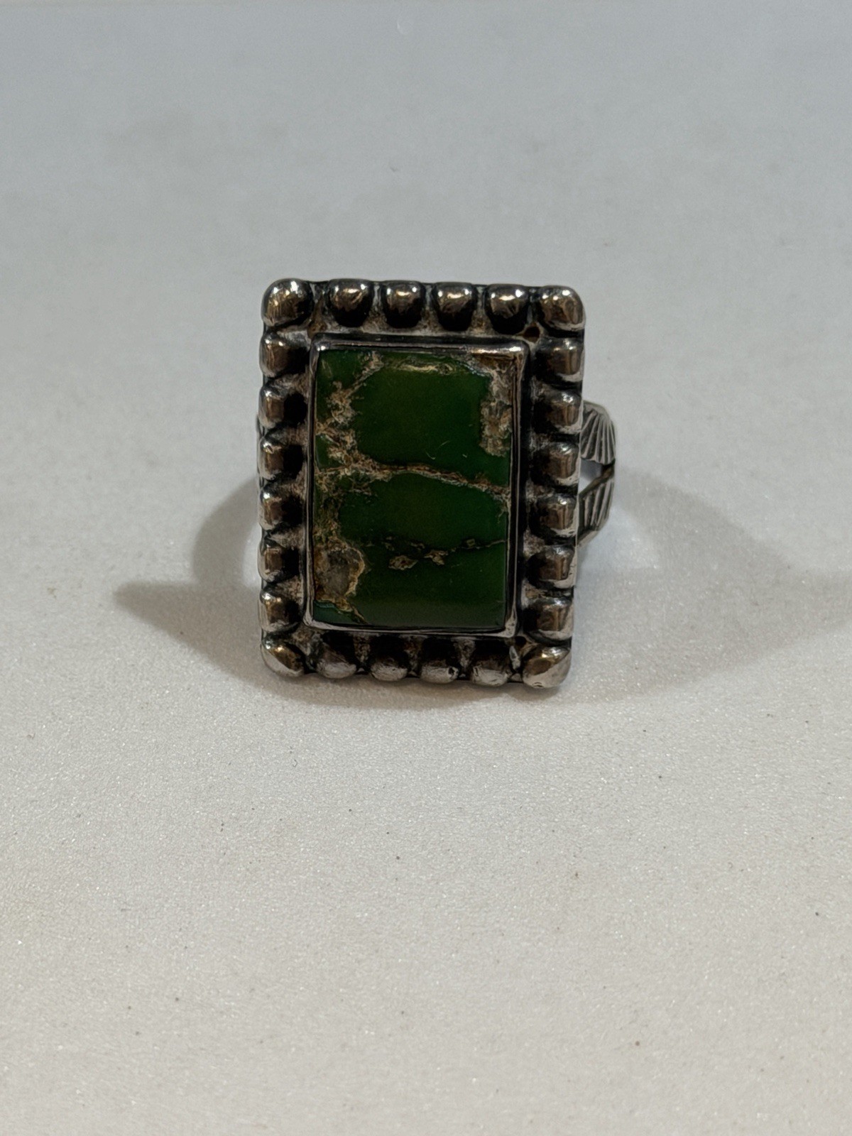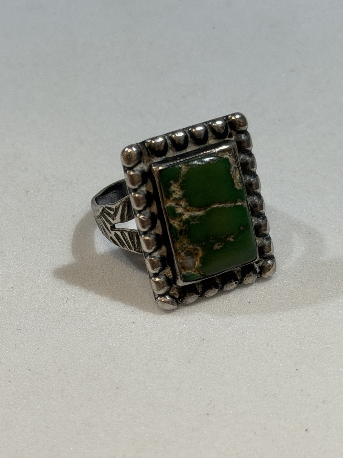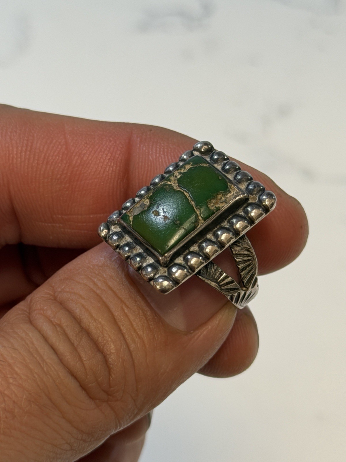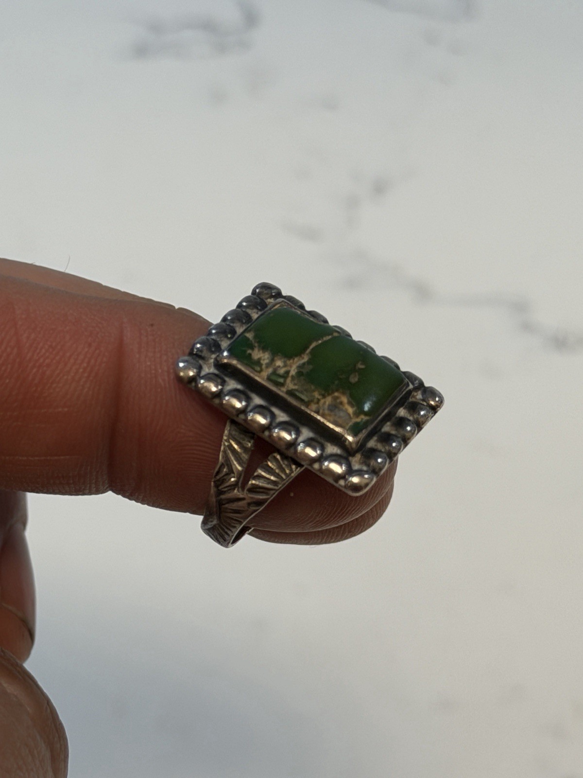EARLY 1900'S NATIVE AMERICAN NAVAJO GREEN TURQUOISE STERLING SILVER RING SZ 6.25