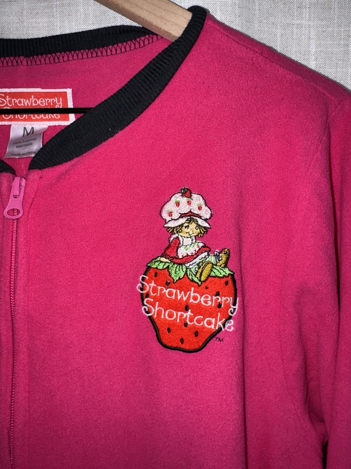Vintage style Y2K Strawberry Shortcake Women s M One Piece Fleece Footie Pajamas