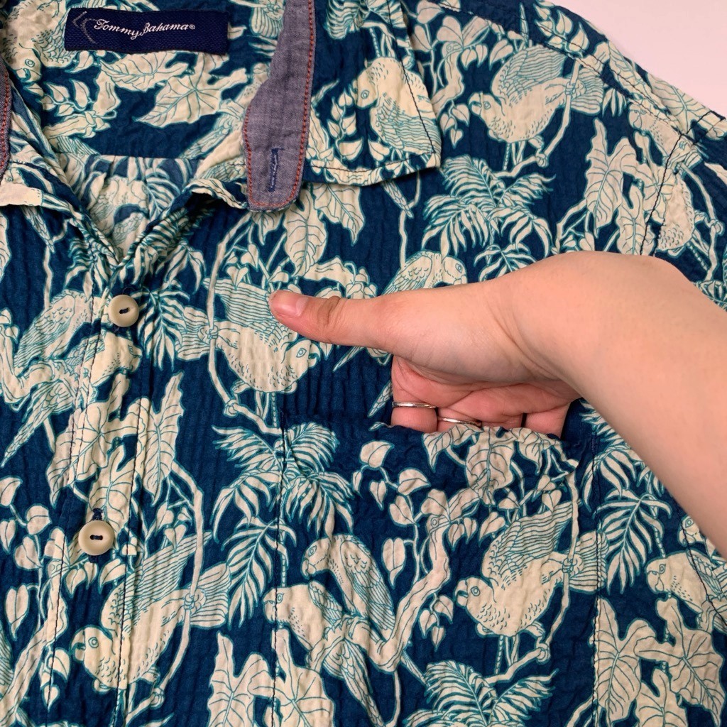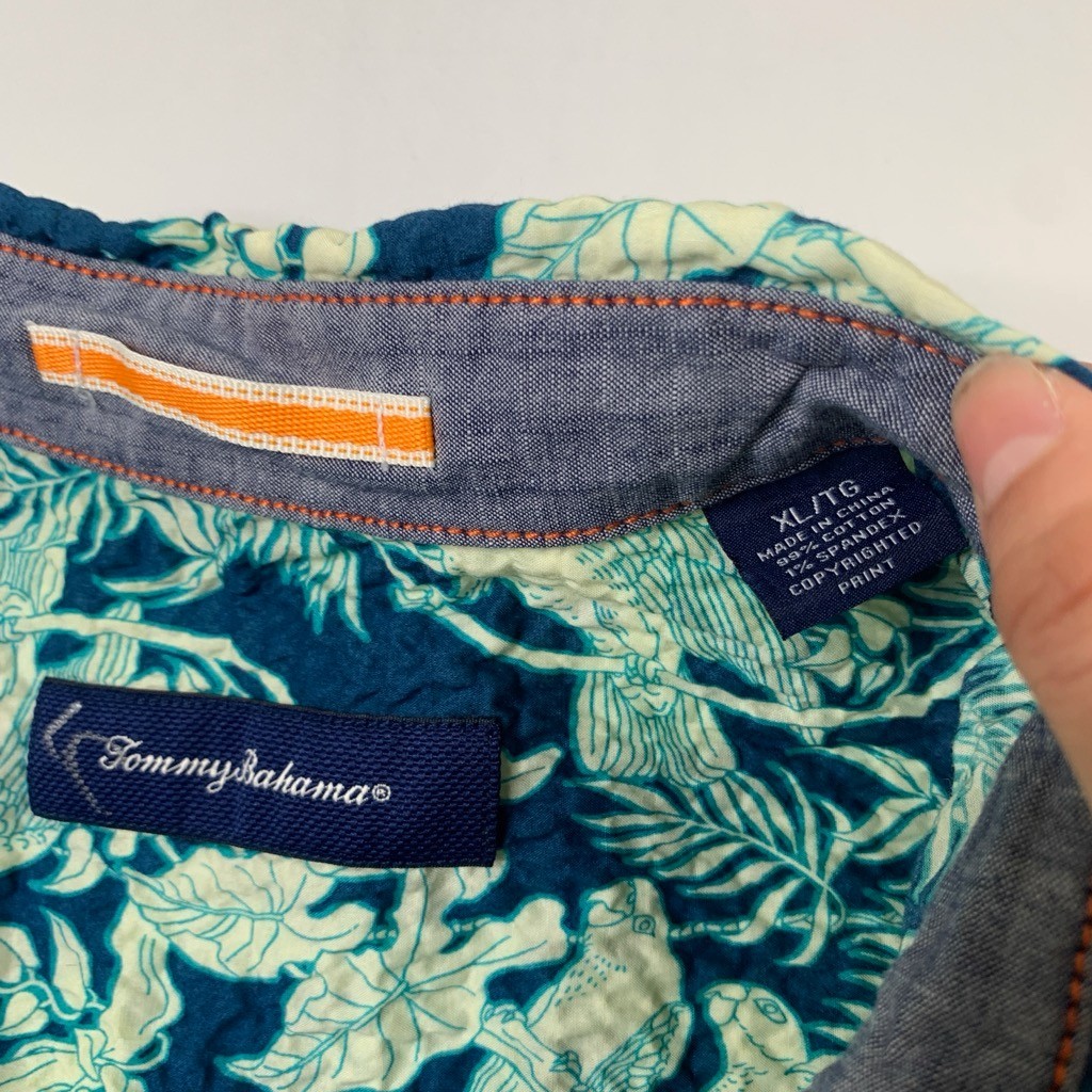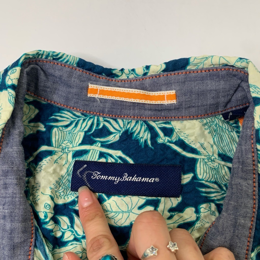 как выглядит Tommy Bahama Shirt Mens XL Teal Blue Gauzy Tropical Bird Floral Hawaiian Stretch фото