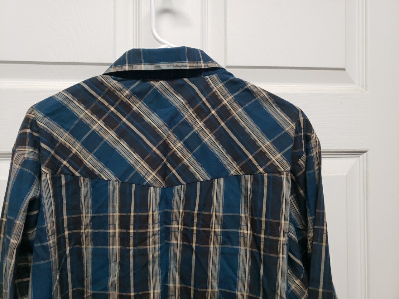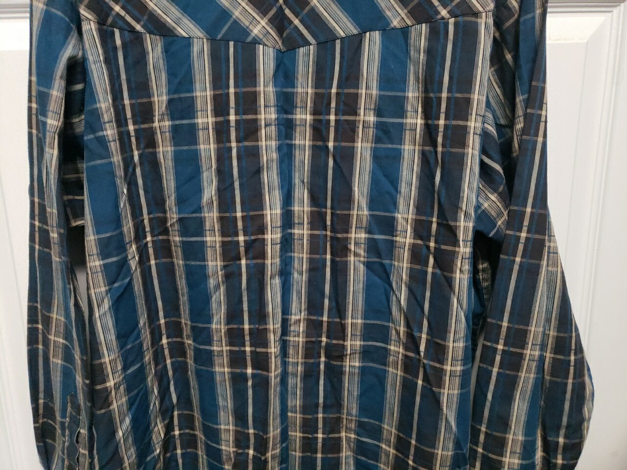 Vtg Ely Cattleman Western Shirt Size XL Pearl Snap Long Sleeves Blue Plaid