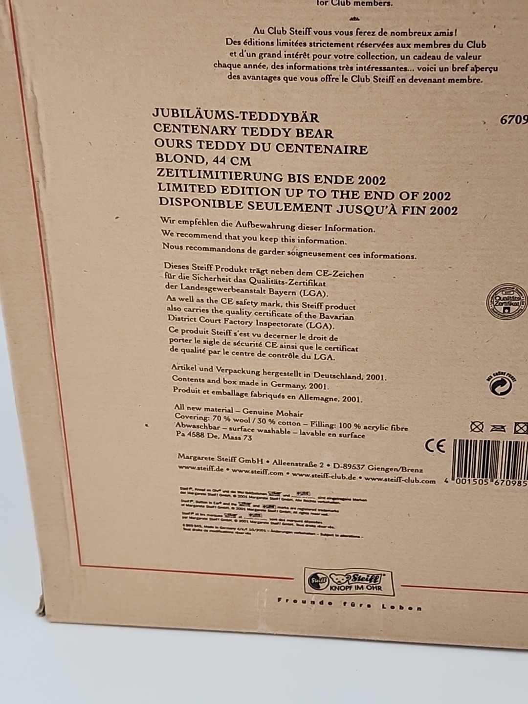 как выглядит Steiff Teddy Bear - Centenary, Blond 44cm 17", Growler, 670985, Mohair with Box фото