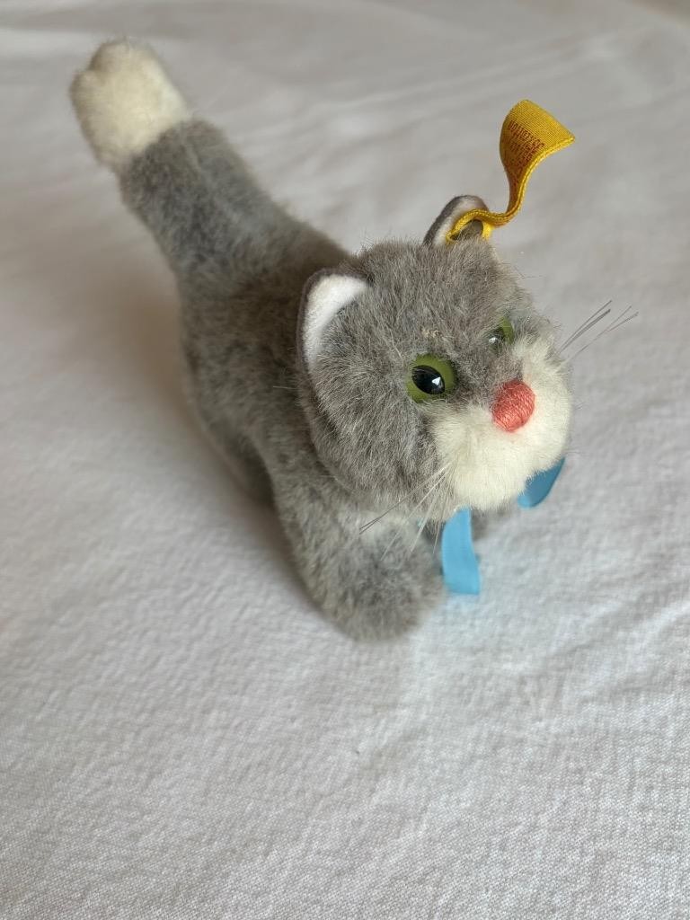 как выглядит Vintage Steiff Grey White Plush Cat Kitten Made In Austria Brass Button Tag фото