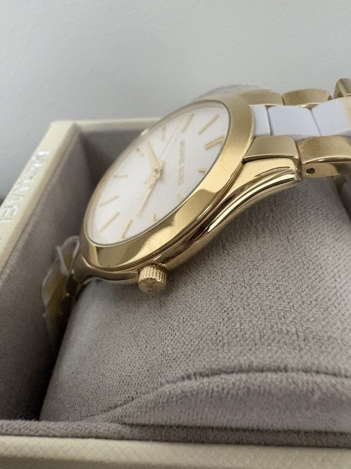 Michael Kors MK4295 Slim Runway White Dial Gold Tone Stainless Women's Watch