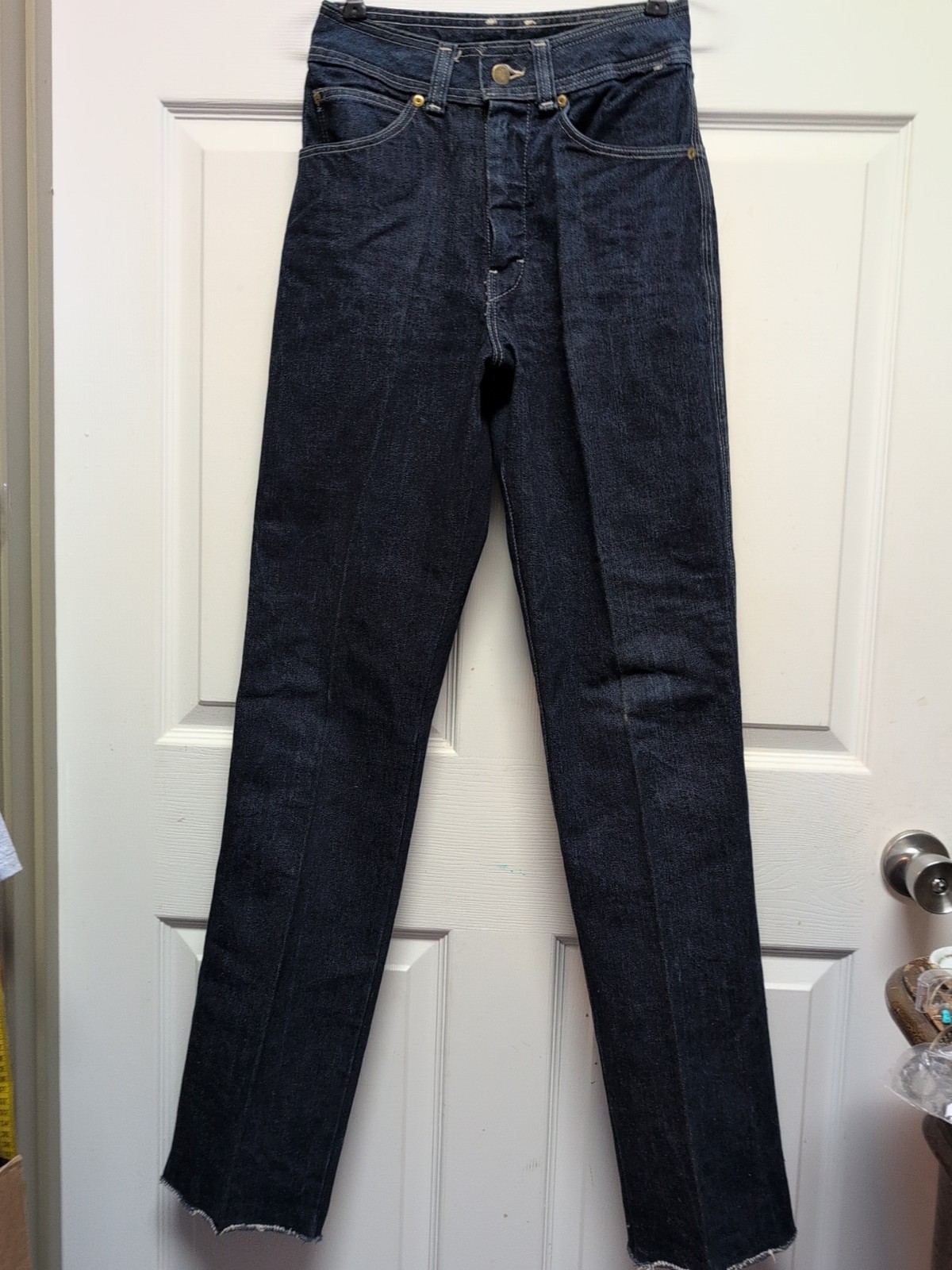 Vtg Women Live Ins Blue Jeans Size 9 5 Pockets Frayed Hems Stitch Pockets