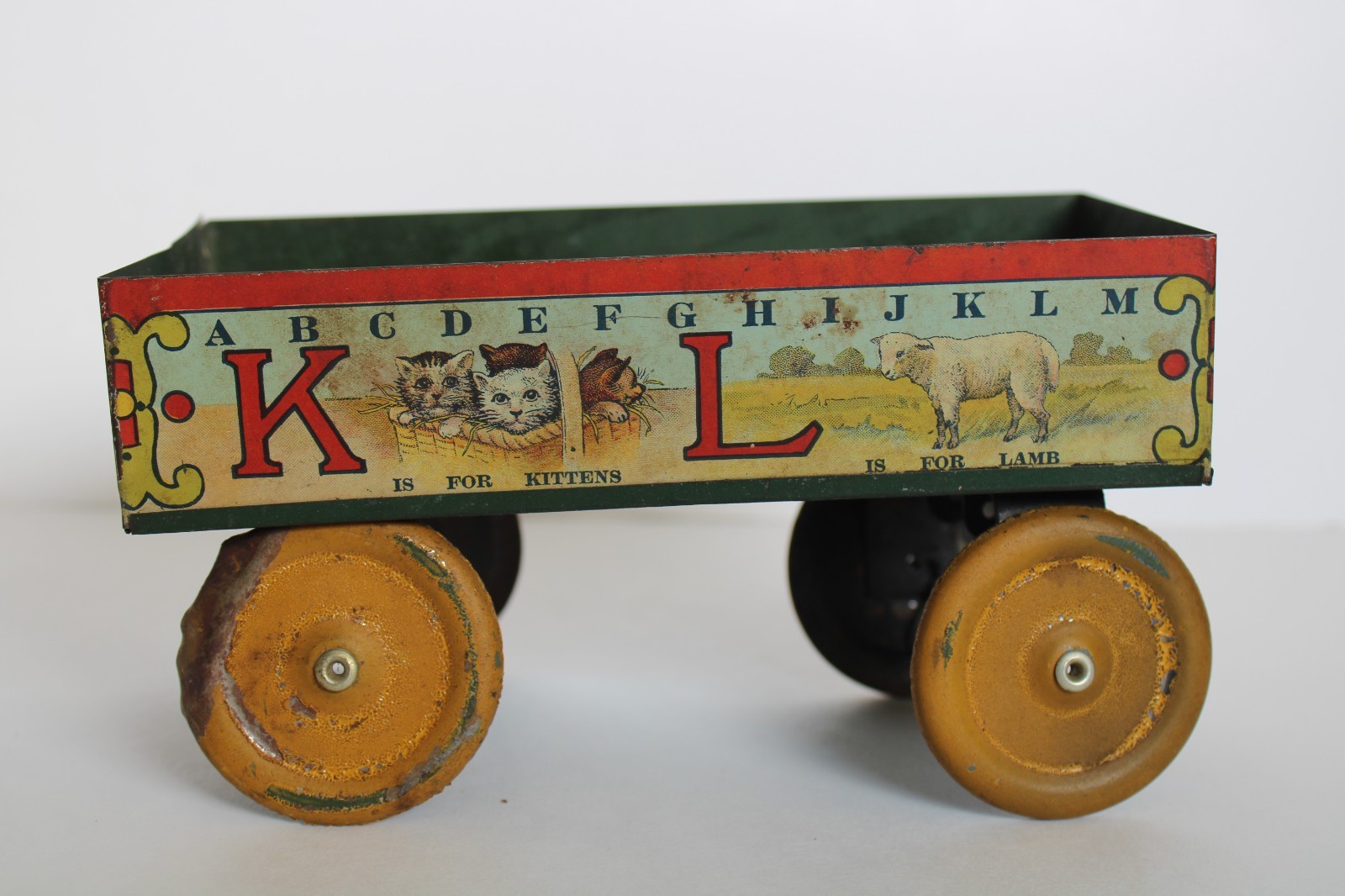 Vintage Tin Lithograph Ohio Art ABC Country Rooster Tin Wagon Toy