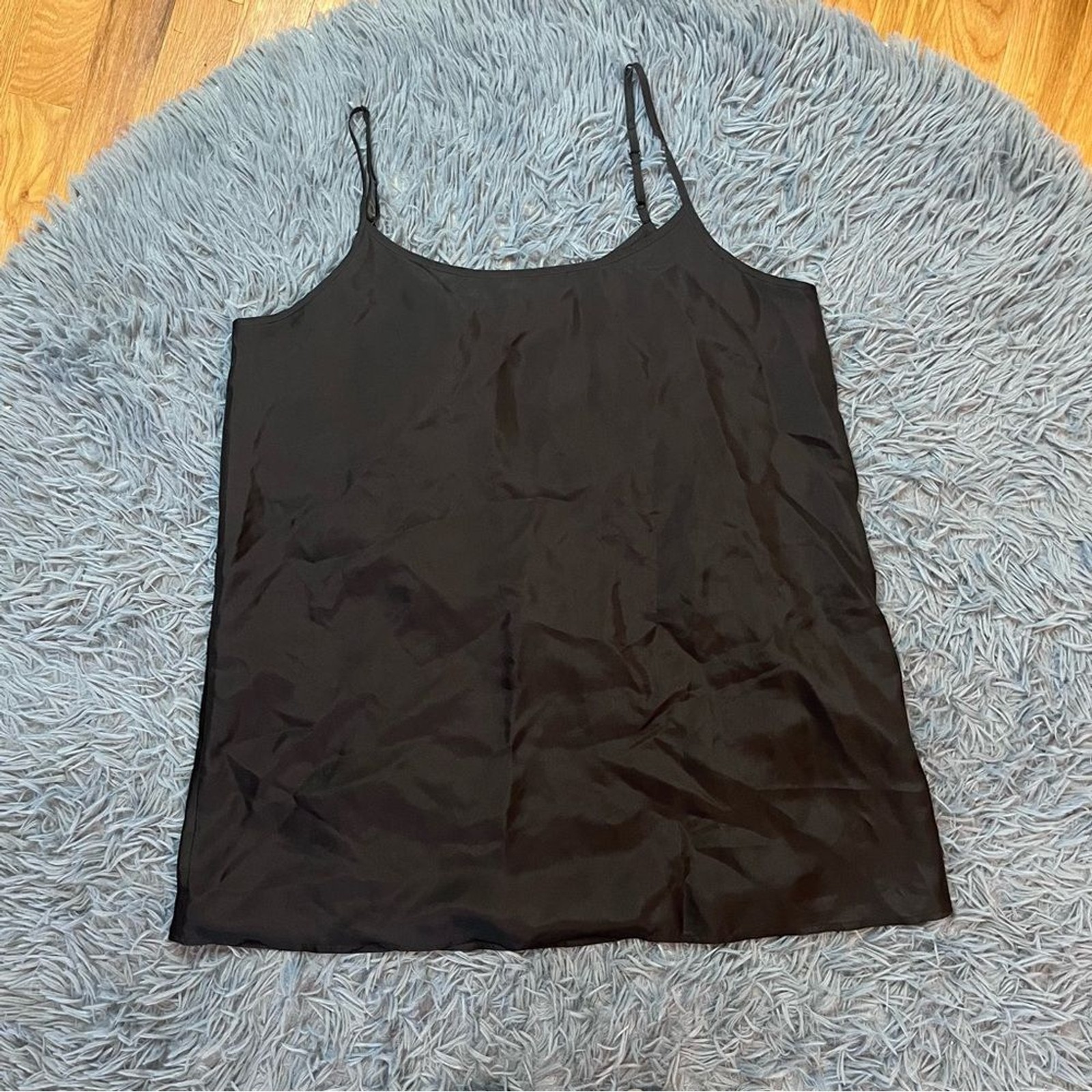 как выглядит Eileen Fisher Black Spaghetti Strap 100 Silk Cami Top Size S фото