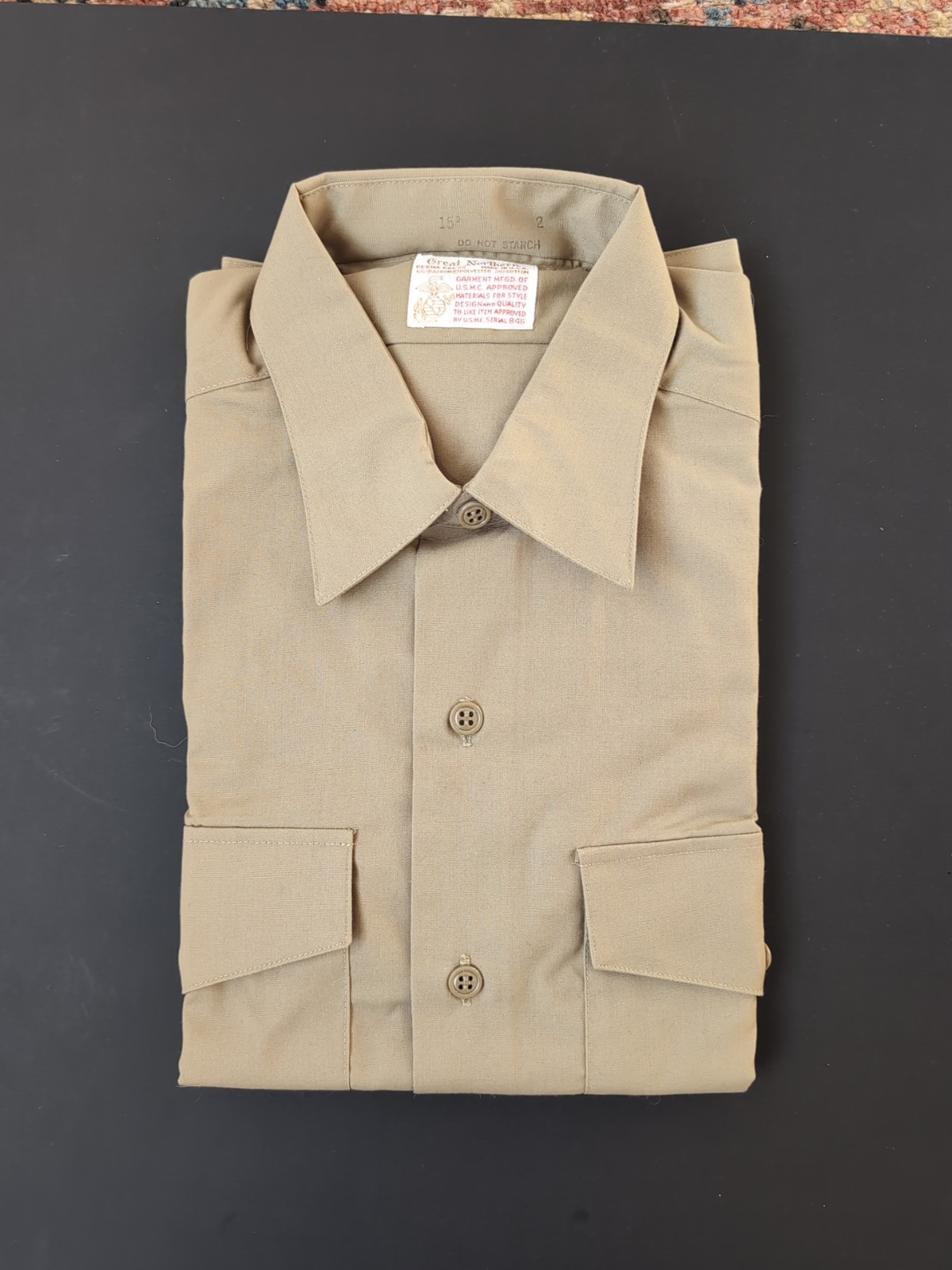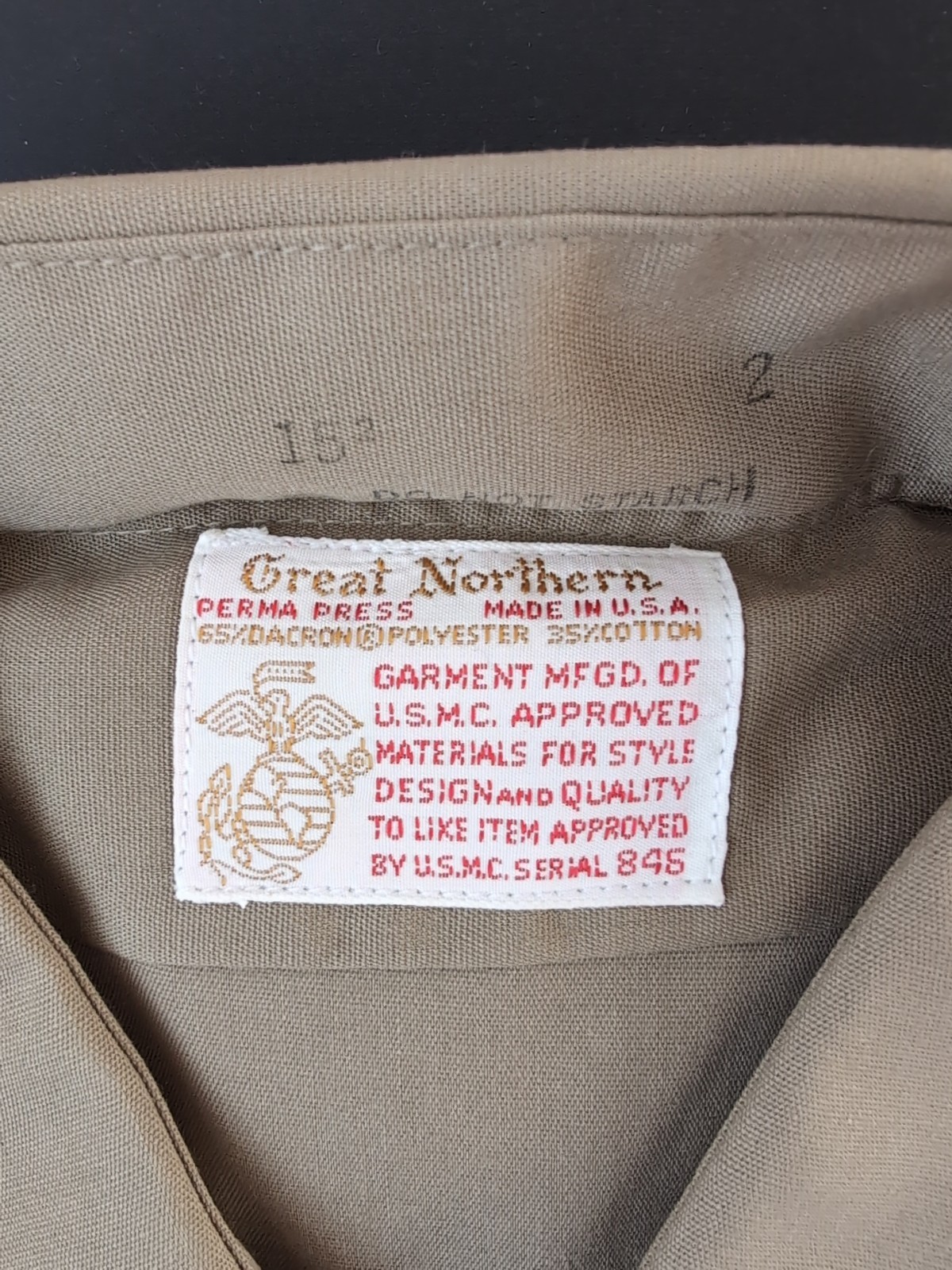 Vintage U.S.M.C Marine Corps Tan Long Sleeve Button Shirt Sz 15 2 Great Northern