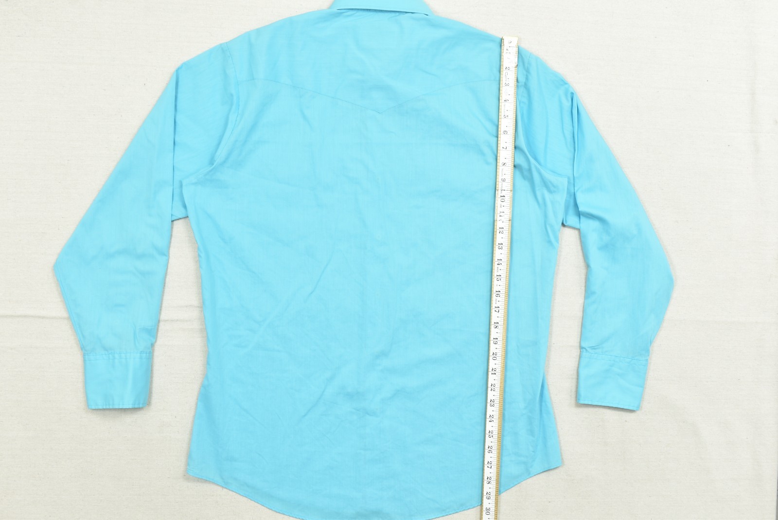 как выглядит Mesquite Niver Western Wear Men 16.5 x 34 Pearl Snap Long Sleeve Shirt Turquoise фото