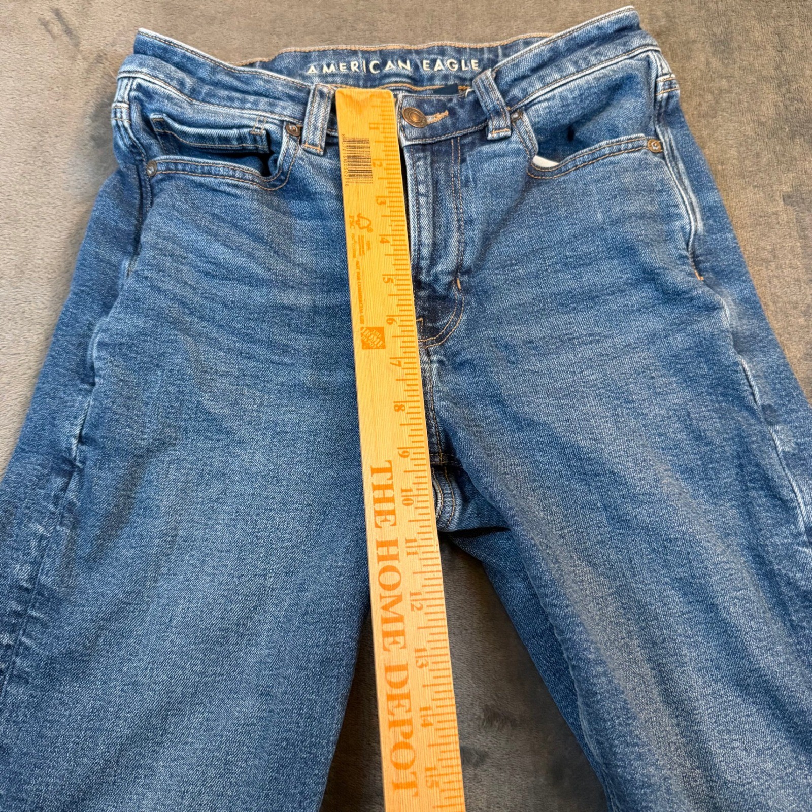 как выглядит American Eagle Blue High Rise Stretch Mom Jeans Tapered Leg Women Size 4 фото