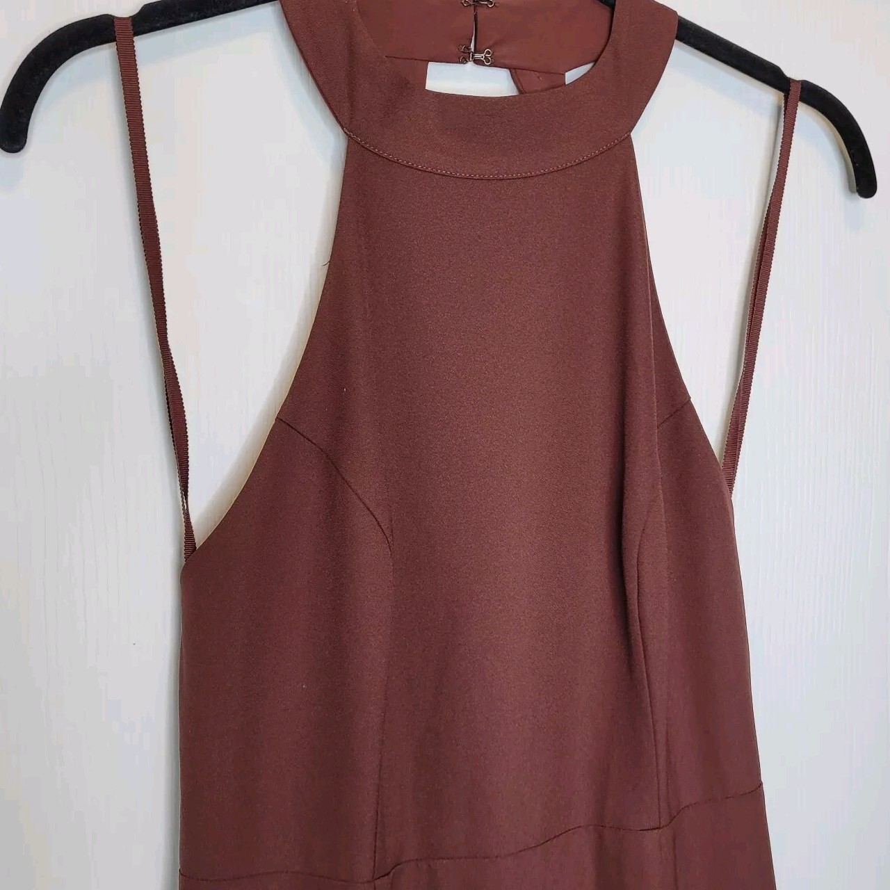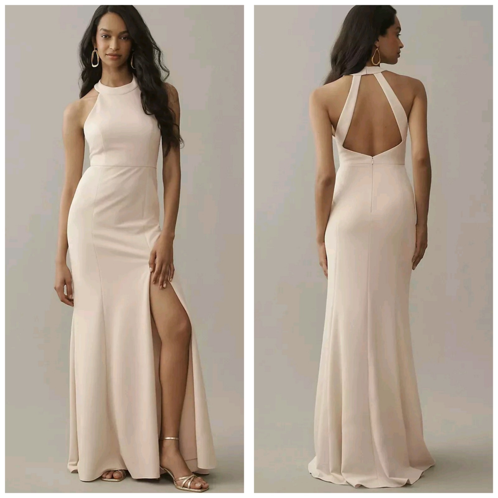 как выглядит Anthropologie BHLDN Juliana High Neck Side Slit Crepe Maxi Dress 6 Brown фото