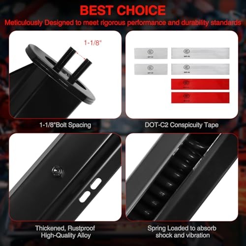 Black Straight Spring Loaded Mud Flap Hanger Bracket Set 1-1/8 Bolt Spacing