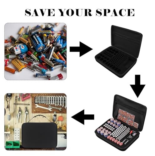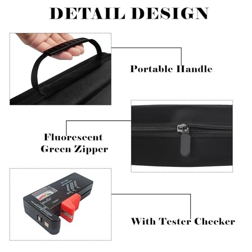 Battery Organizer Storage Case with Tester for AA AAA C D 9V Battery black