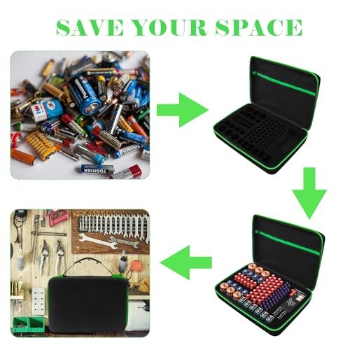 Battery Organizer Storage Case with Tester for AA AAA C D 9V black-green