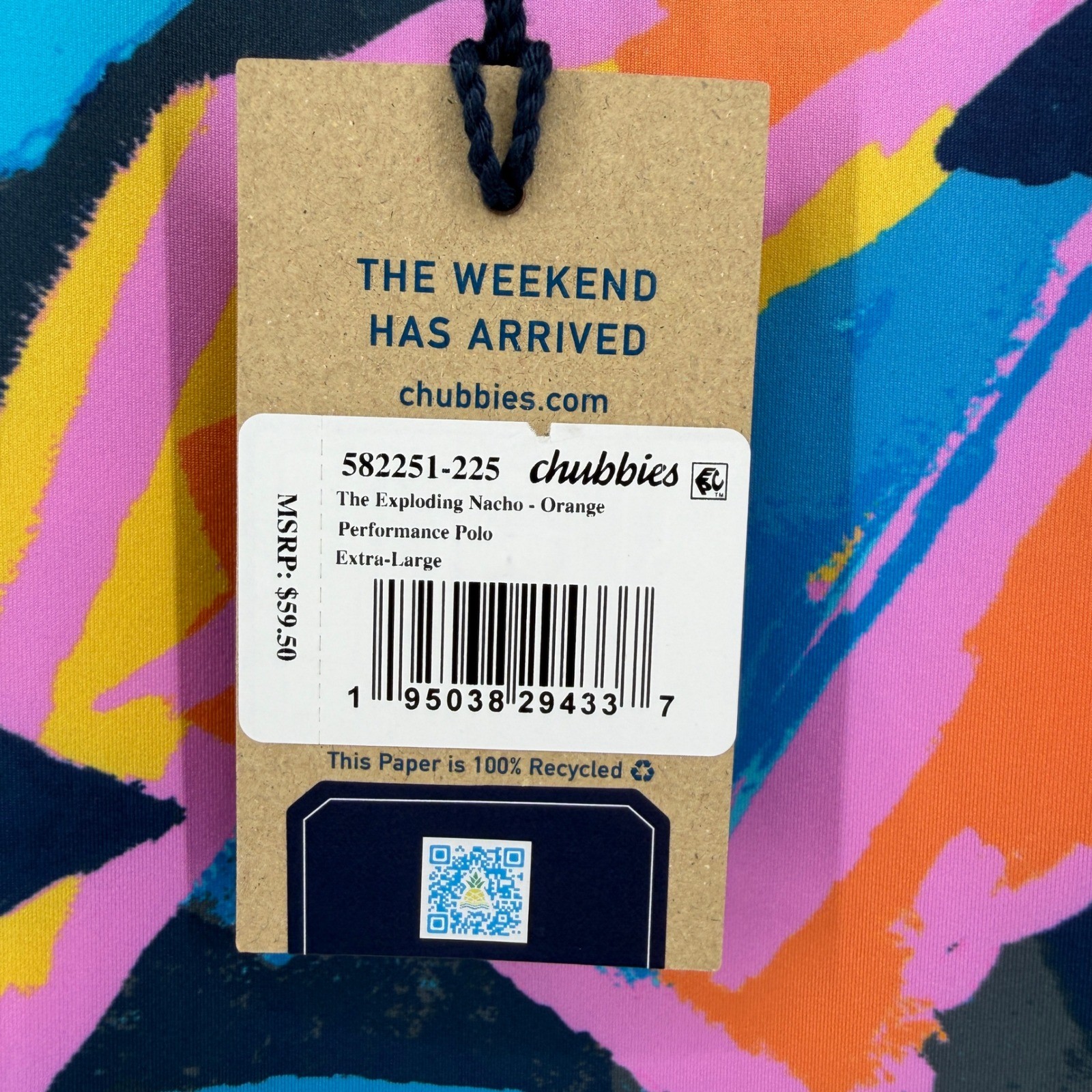 59 NEW Chubbies Mens XL The Exploding Nacho Orange Performance Golf Polo Shirt