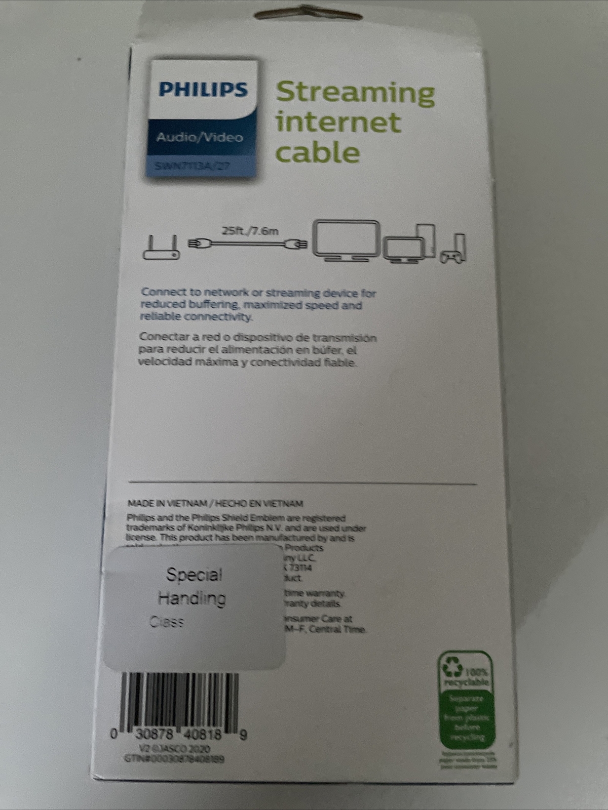 Philips Ethernet Cable 25 ft. Cat5e Up to 100Mbps for Router / Modem - Black