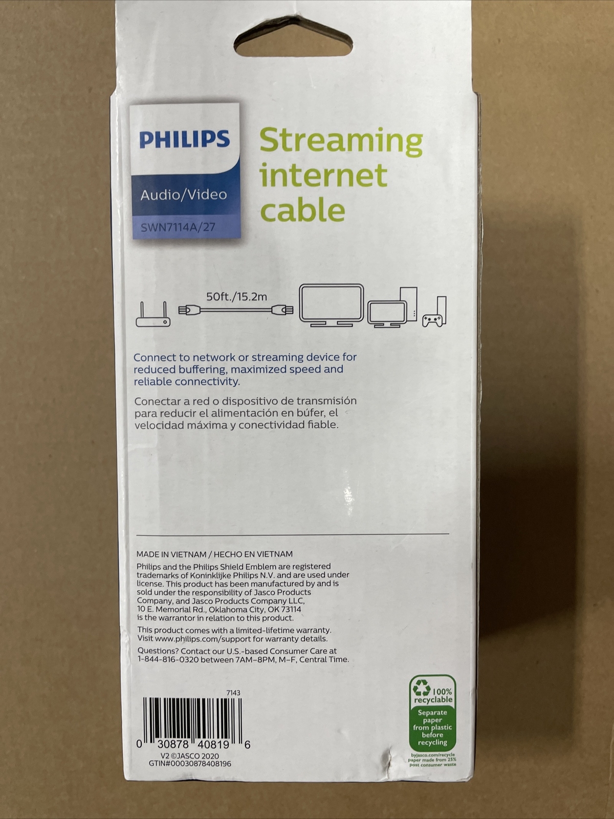 Philips Cat 5e Ethernet Cable 50ft ft. Up to 100Mbps for Router / Modem - Black