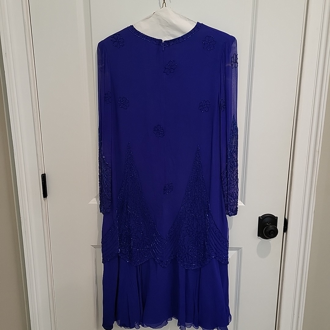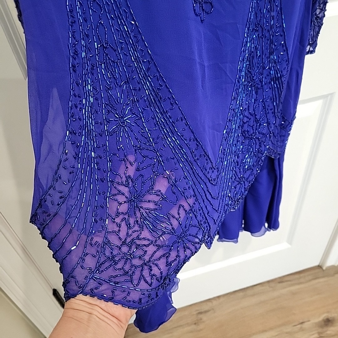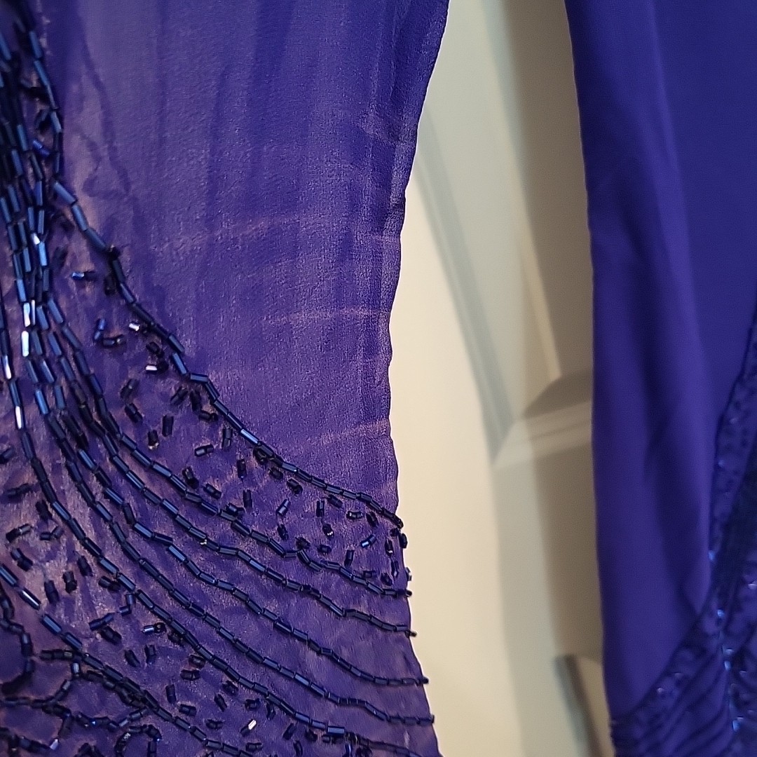 как выглядит JOVANI MOTHER BRIDE DRESS Size 12 Purple Beaded 100 Silk Formal фото
