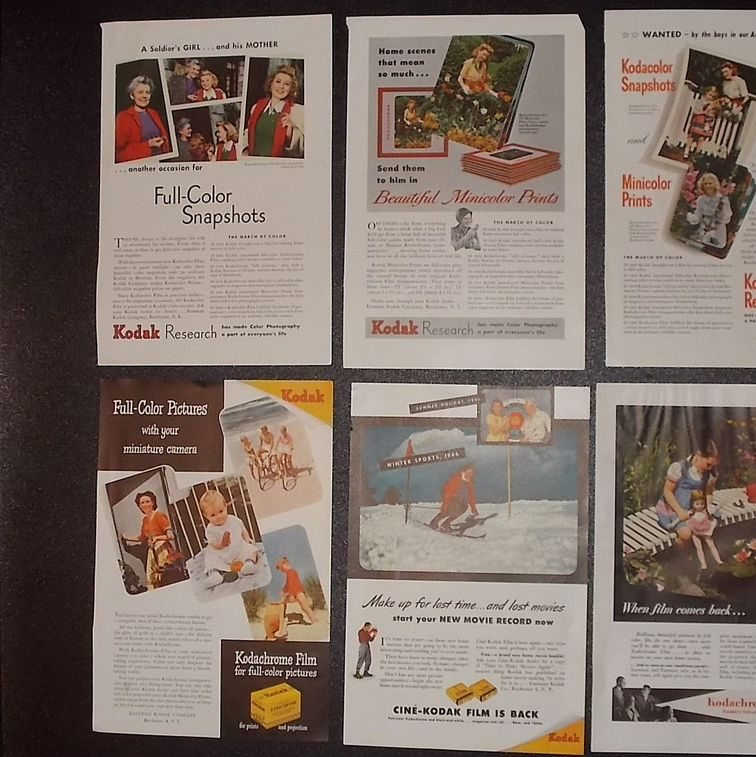 KODAK Cameras FILM PRINTS Magazine Print ADS 1930-60's Lot of 8 3