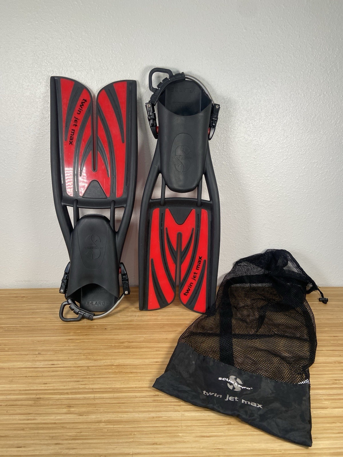 Scubapro Twin Jet Max Fins -XL- Red/Black EUC Extra Large Propeller Fin Mesh Bag