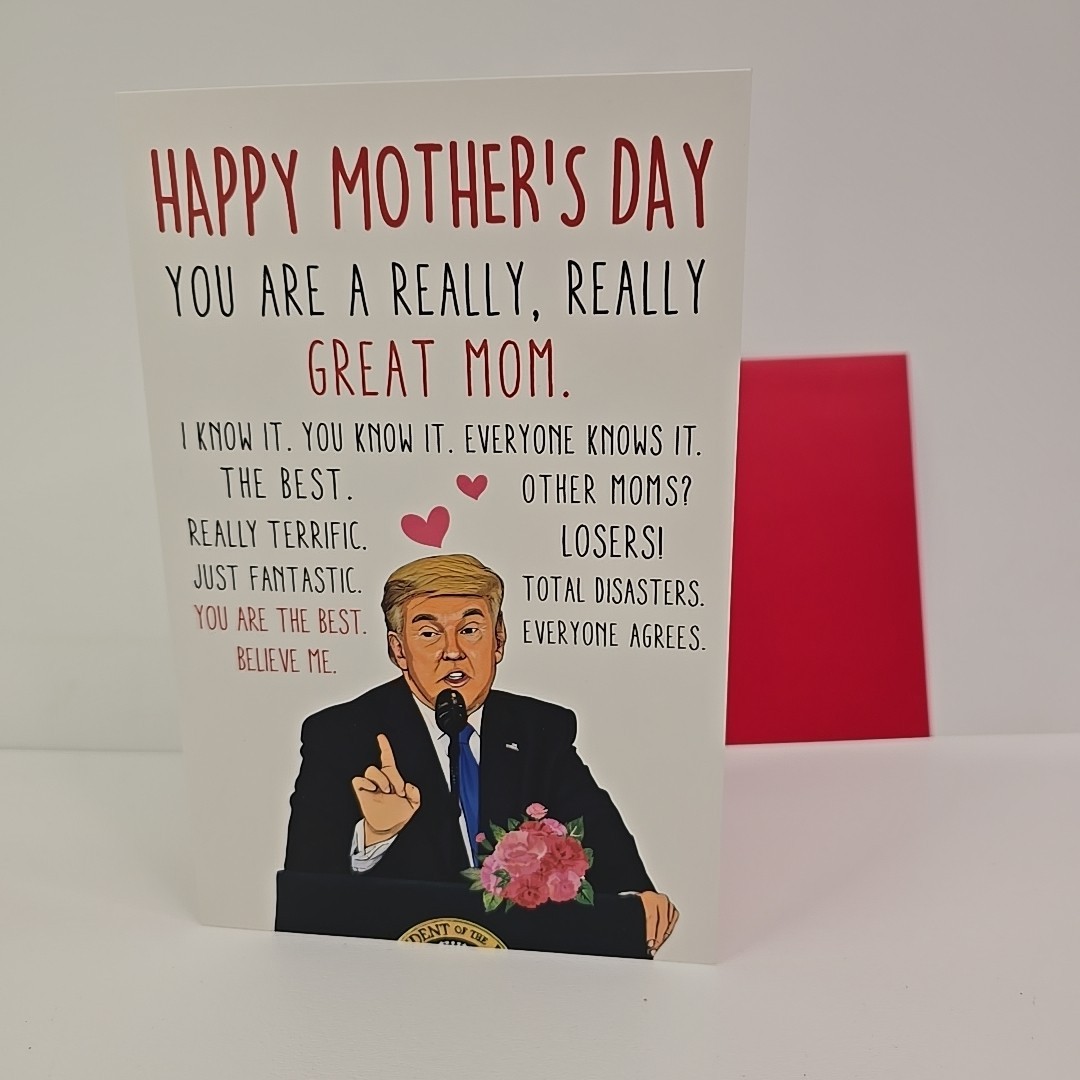 Donald Trump Mother's Day Card, Funny DJT POTUS Happy Mothers Day Envelope Set