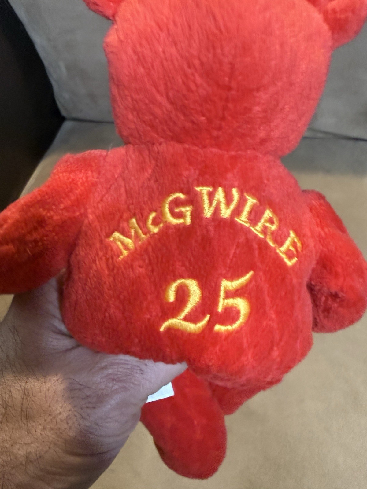 Mark McGwire 1998 Salvino's Bamm Beano's 25 Red Plush Beanie Bear 8in Vintage