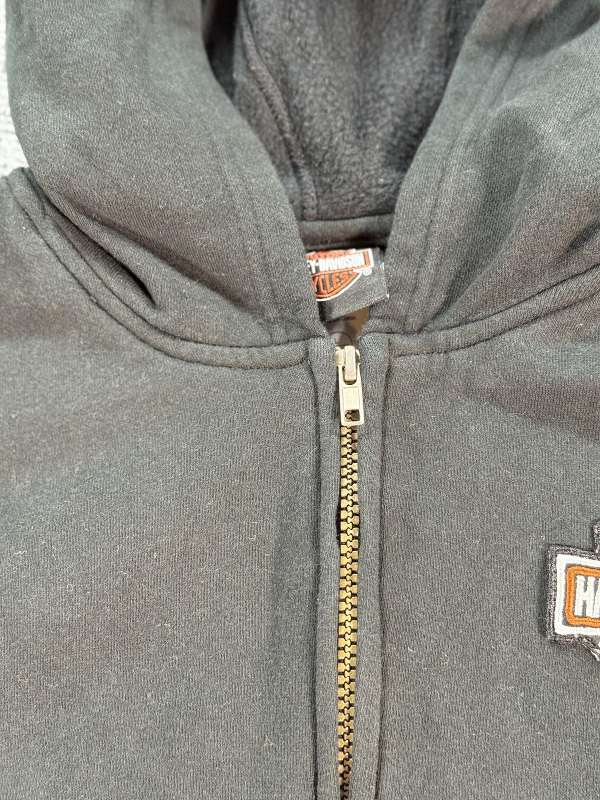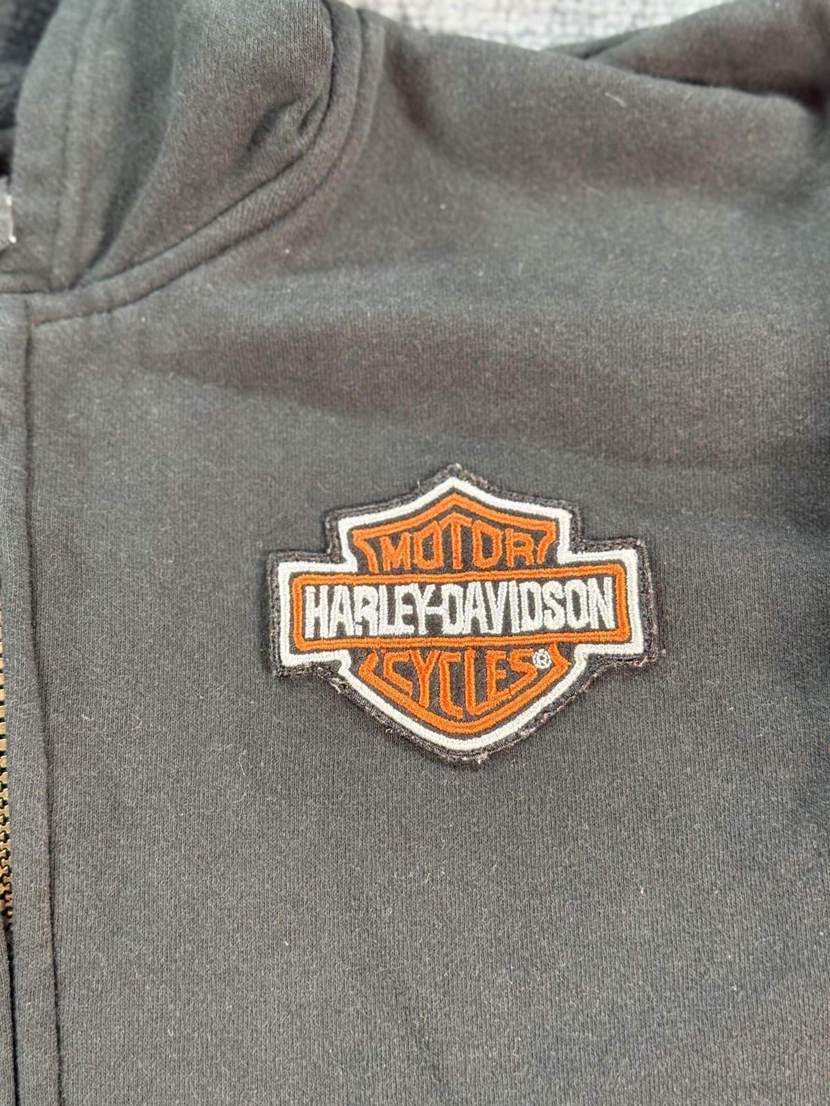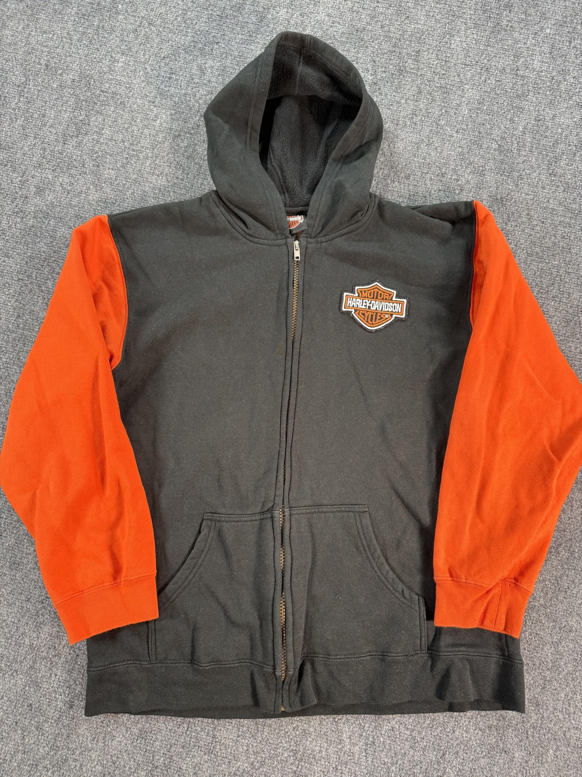 Harley-Davidson Hoodie Youth Large 16/18 Black Orange Full Zip Bar Shield