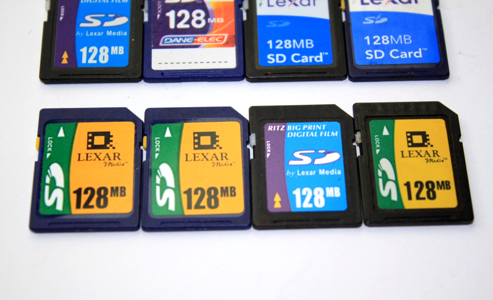 как выглядит Lot of 11 Lexar 1 Dane Elec 128MB SD Cards Working фото