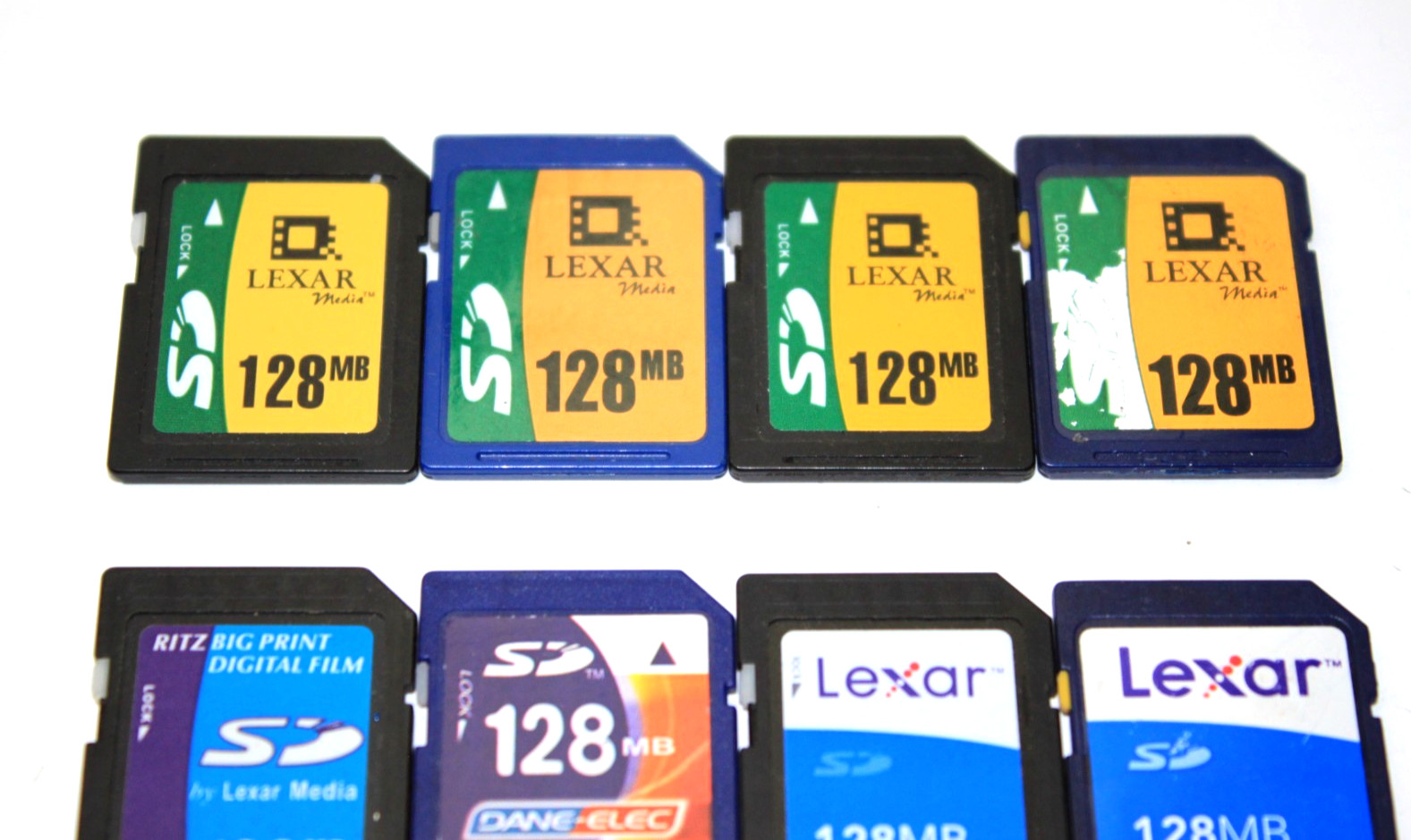 Lot of 11 Lexar 1 Dane Elec 128MB SD Cards Working