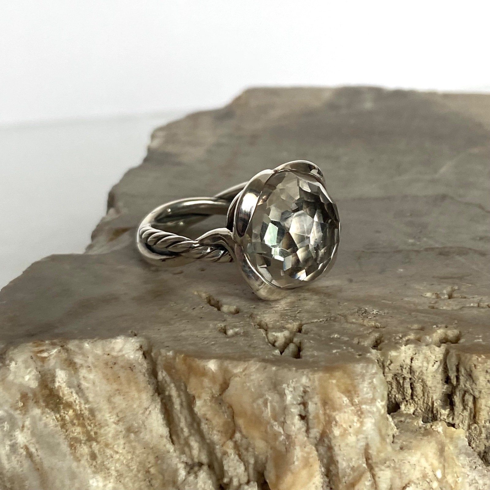 David Yurman Sterling Silver 925 Continuance Ring Faceted Crystal Quartz Sz 7
