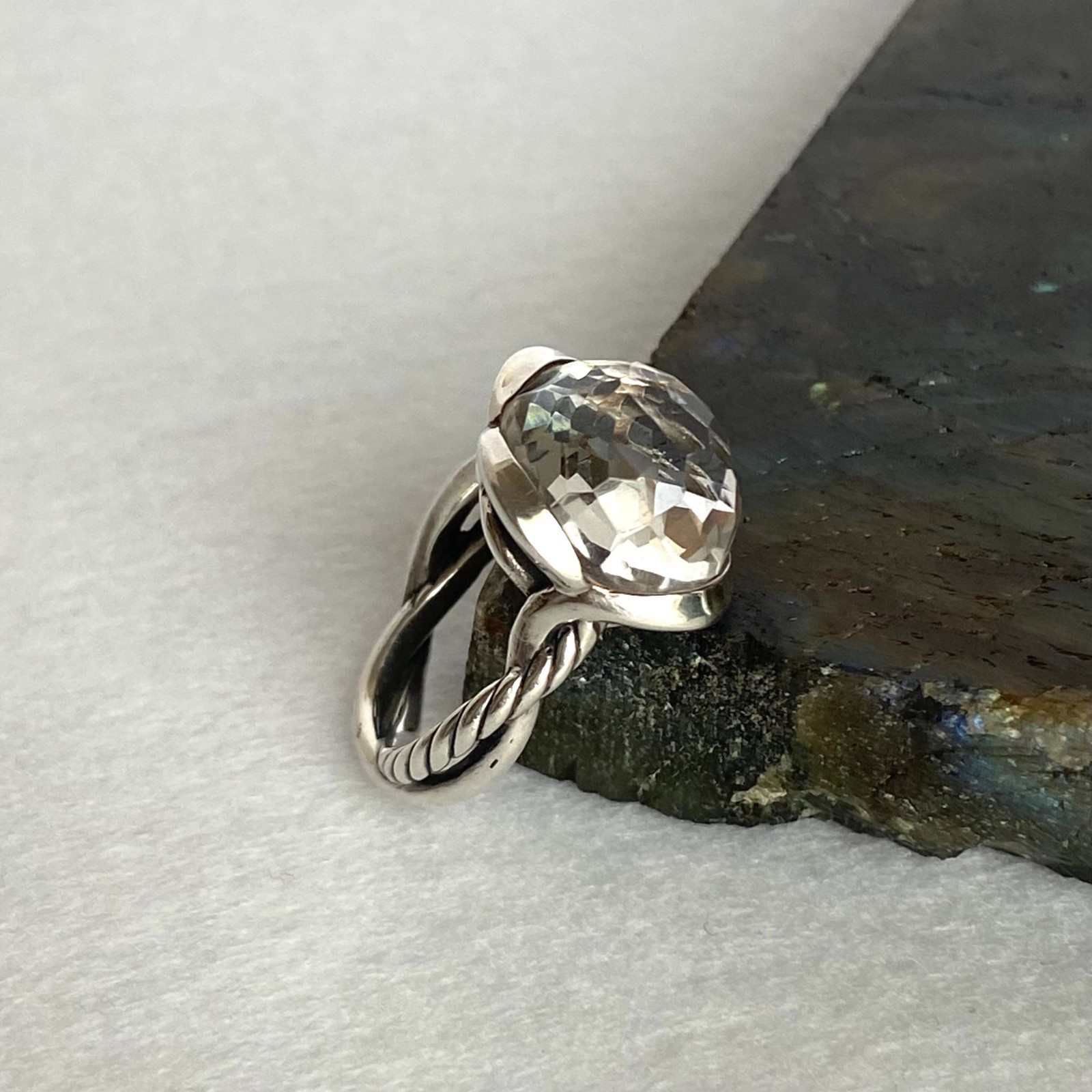 как выглядит David Yurman Sterling Silver 925 Continuance Ring Faceted Crystal Quartz Sz 7 фото