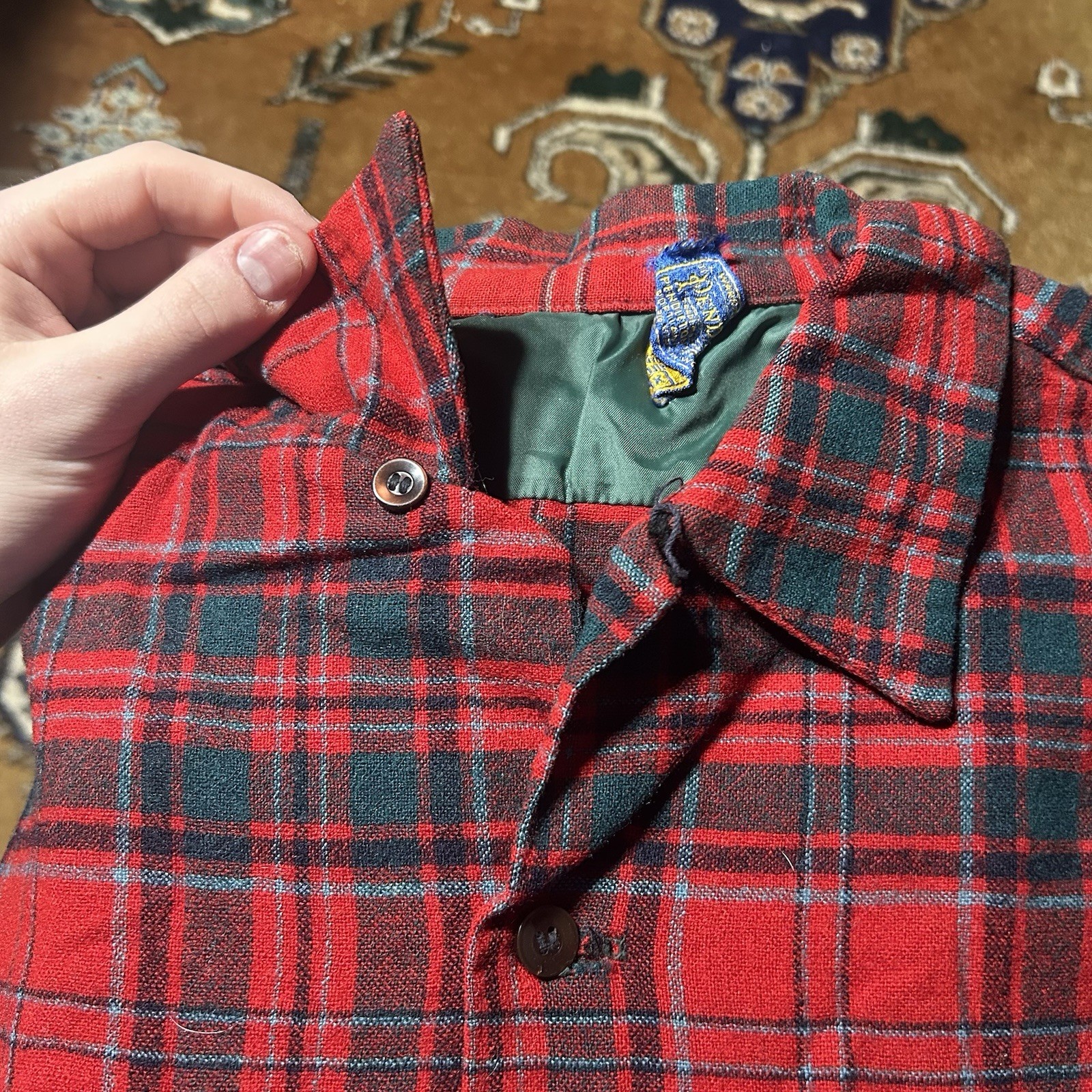 как выглядит Vtg Vintage Pendleton Loop Collar Shirt Button Up Flap Pockets Sz Xl 1960s Red фото