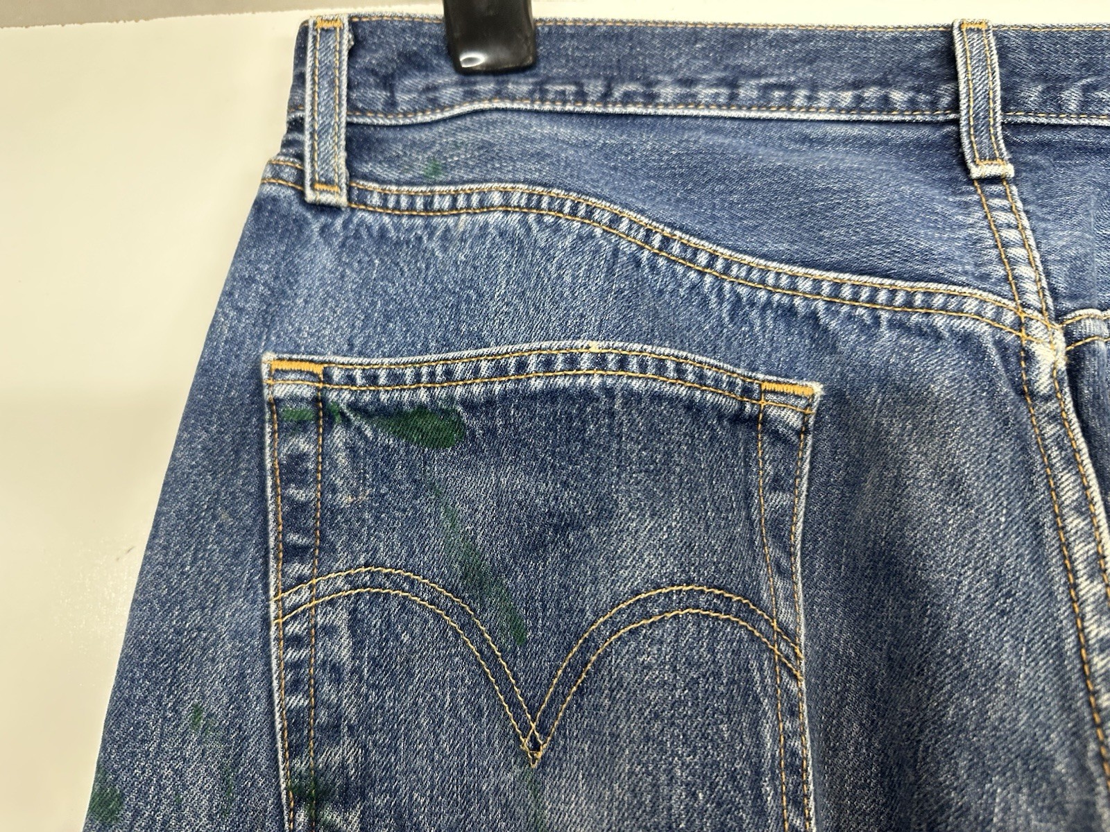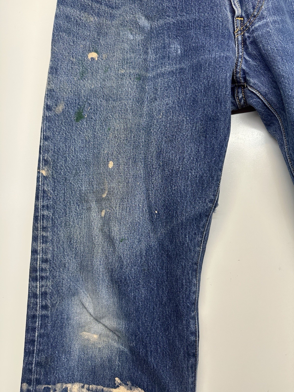 как выглядит Levis 501 Jeans Mens 36x32 Blue Straight Leg Button Fly Denim Paint Distressed фото