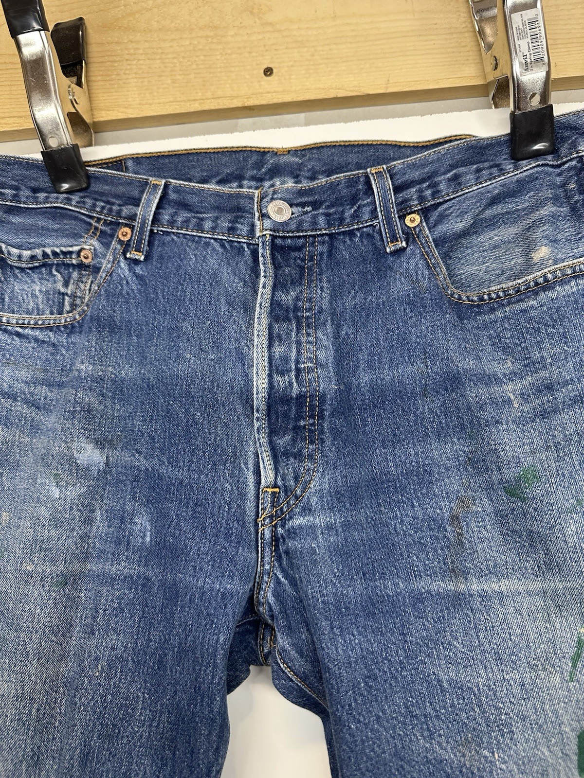 Levi's 501 Jeans Mens 36x32 Blue Straight Leg Button Fly Denim Paint Distressed