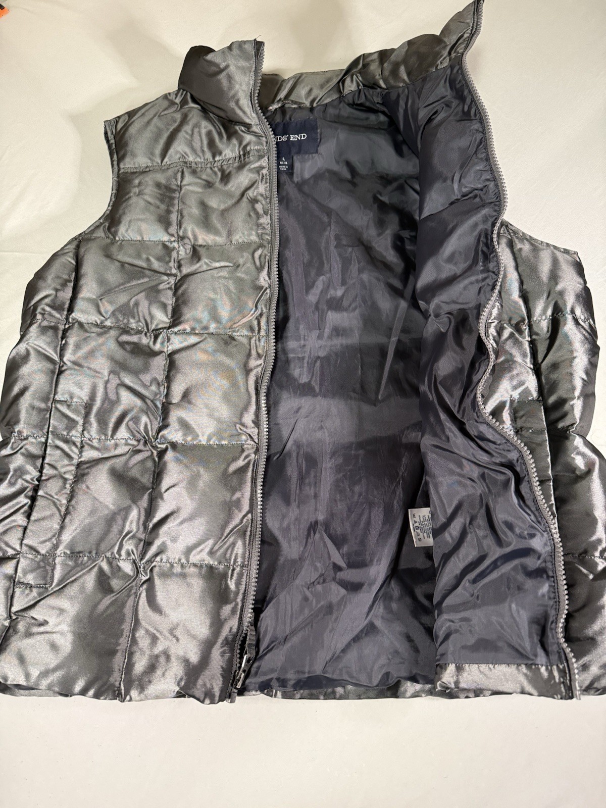 как выглядит Lands End Youth L 14-16 Down Puffer Vest Charcoal Gray Quilted Excellant фото