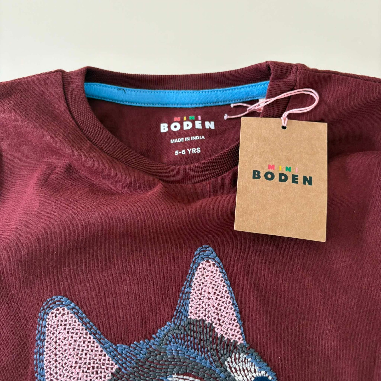 Mini Boden Burgundy Wolf Superstitch Long Sleeve Shirt. Size 5-6 Years.