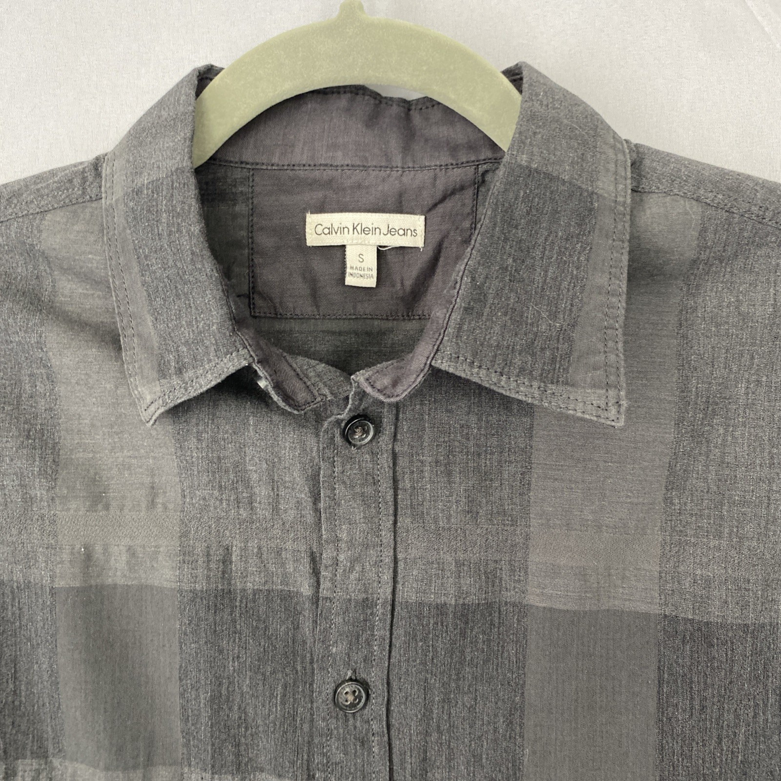 как выглядит NWT Calvin Klein Shirt Mens S Gray SS Button Up Casual Check Print Tab Sleeve фото