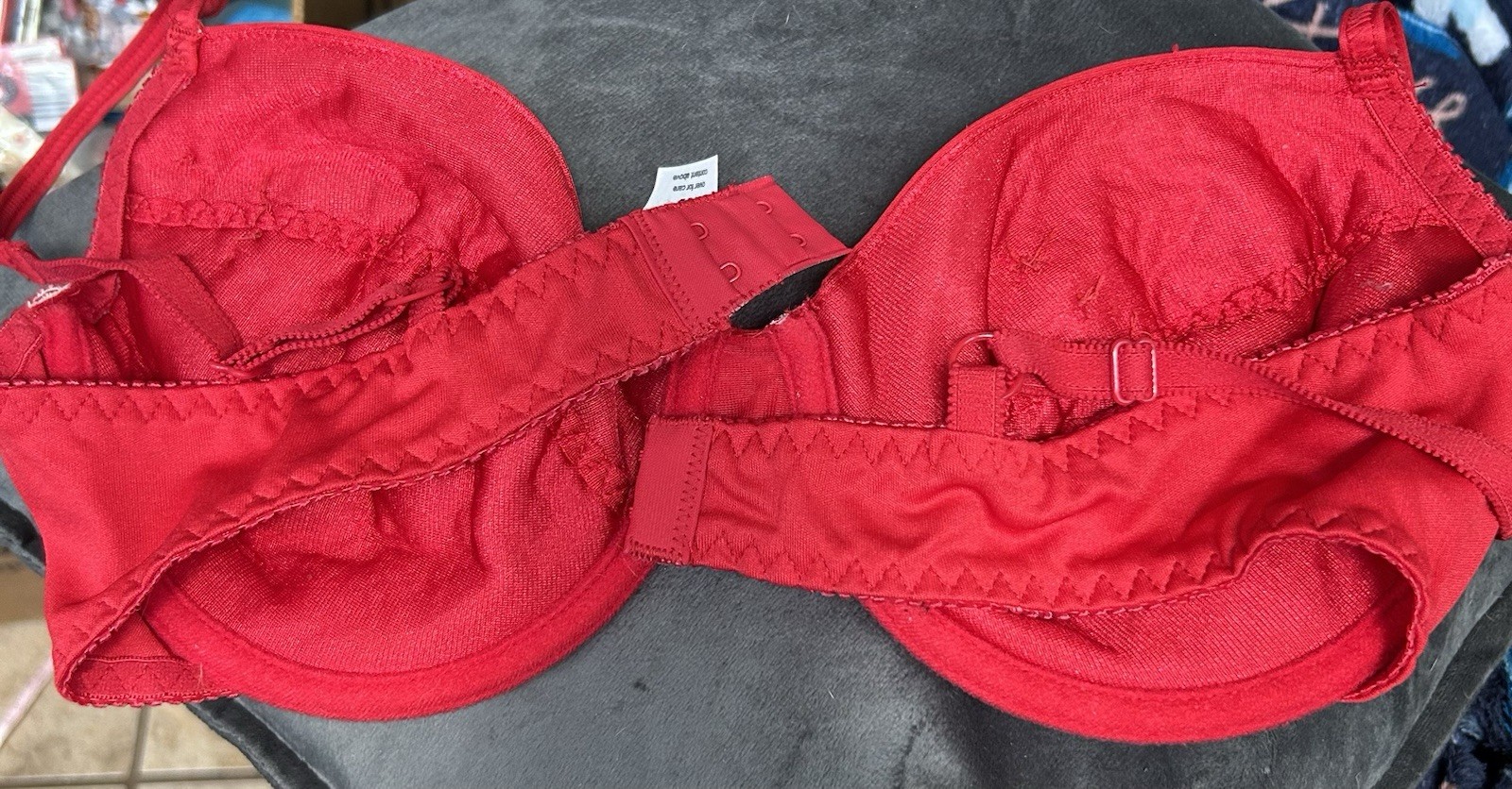 как выглядит Betty Boop Red Bra 38D Handmade W/ Betty Boop Fabric/Stones/Roses-Very RARE фото