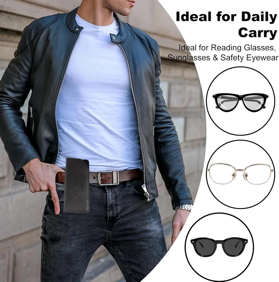 как выглядит 2 Packs Glasses Case with Clip Soft Black Leather Eyeglass Pouch with Plastic фото