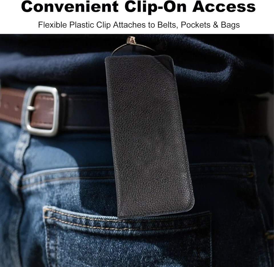 2 Packs Glasses Case with Clip Soft Black Leather Eyeglass Pouch with Plastic