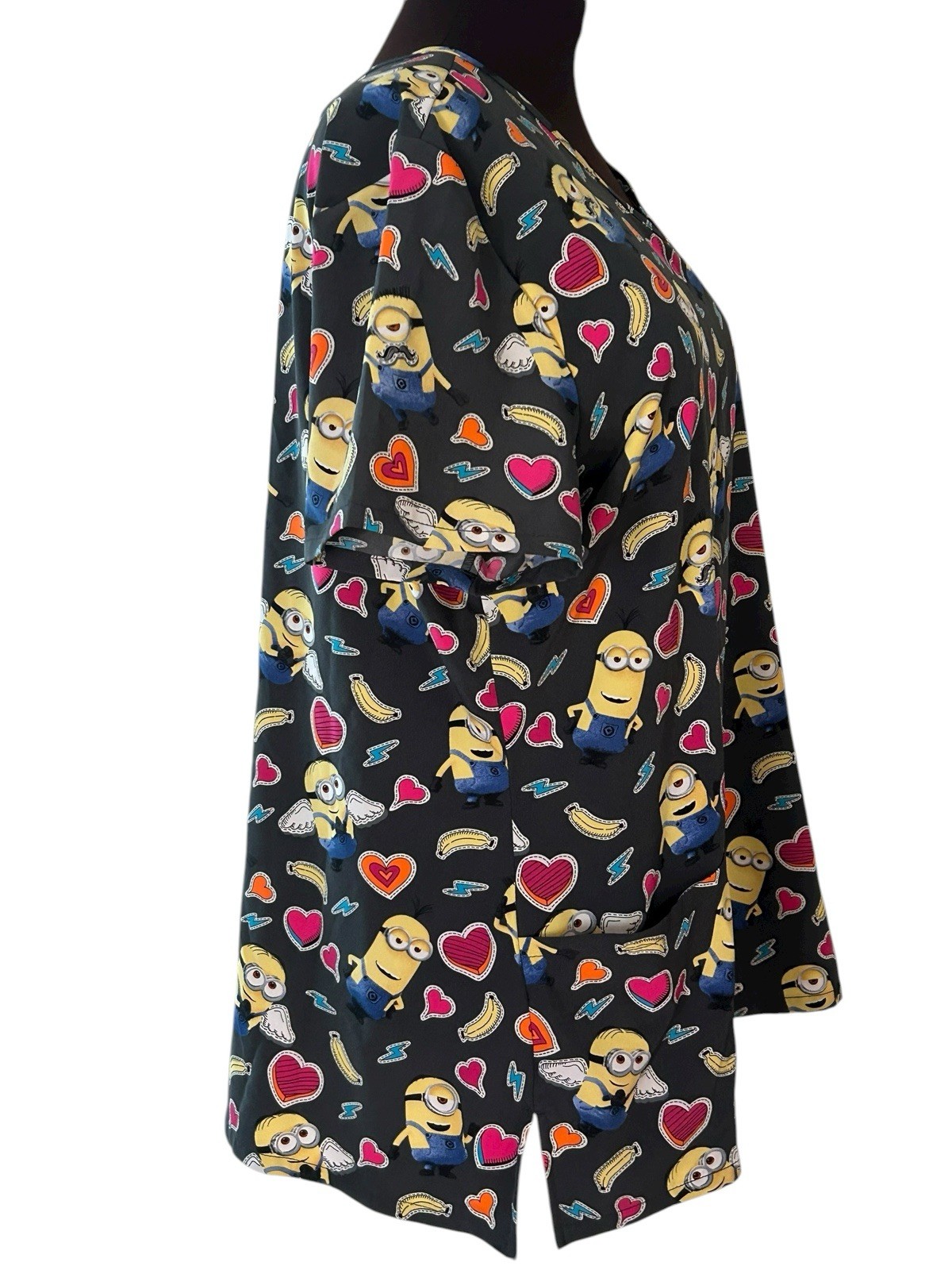 Women's XL Despicable Me Scrub Top Minions Bananas, Hearts Stretch Pockets New