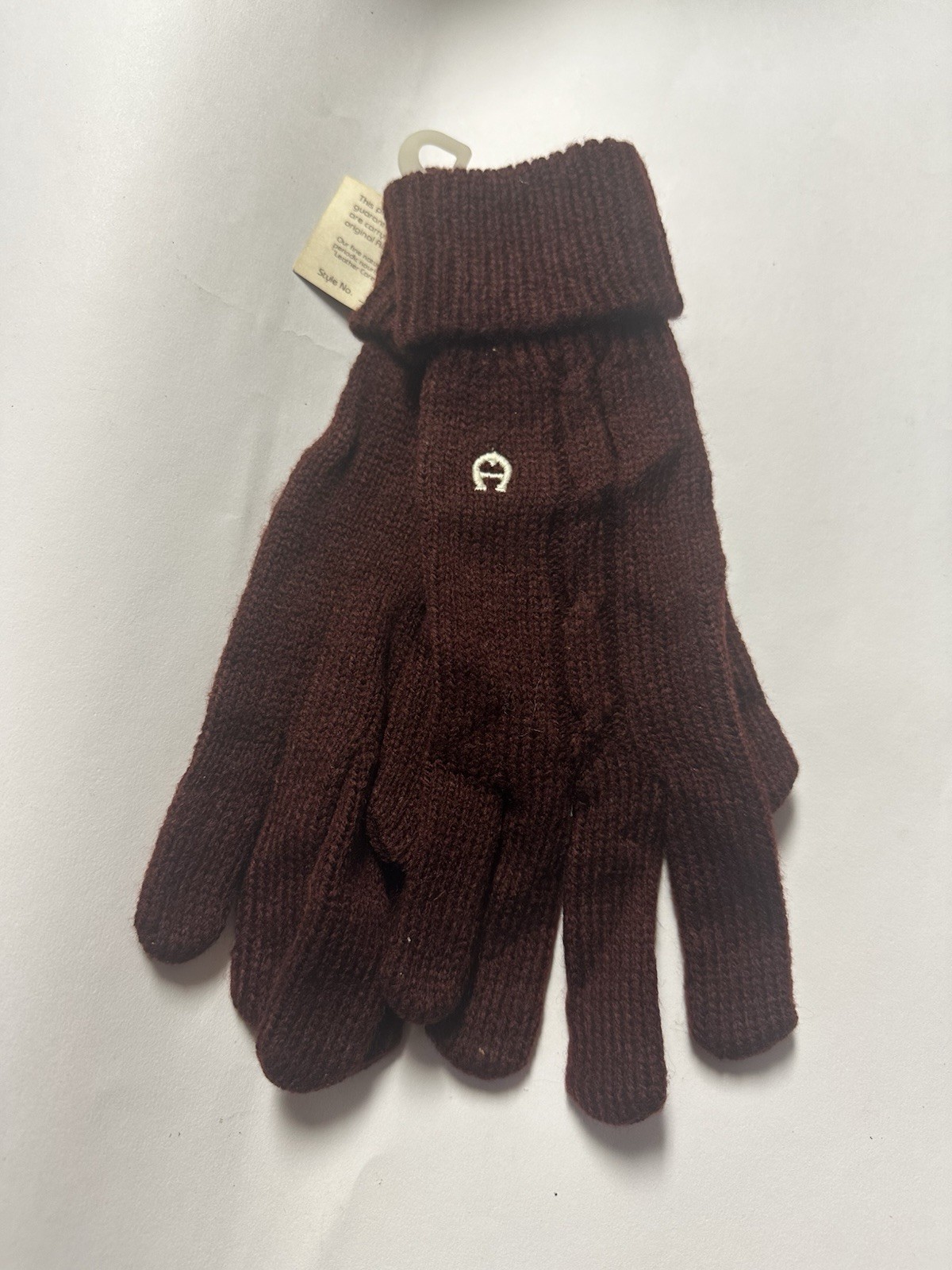 как выглядит Vintage ETIENNE AIGNER Brown Knit Embroidered Logo Gloves Cuffed One Size NWT фото