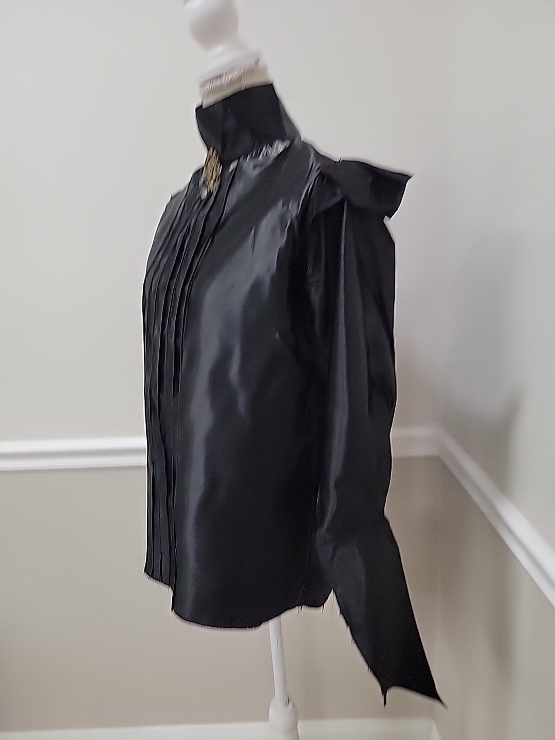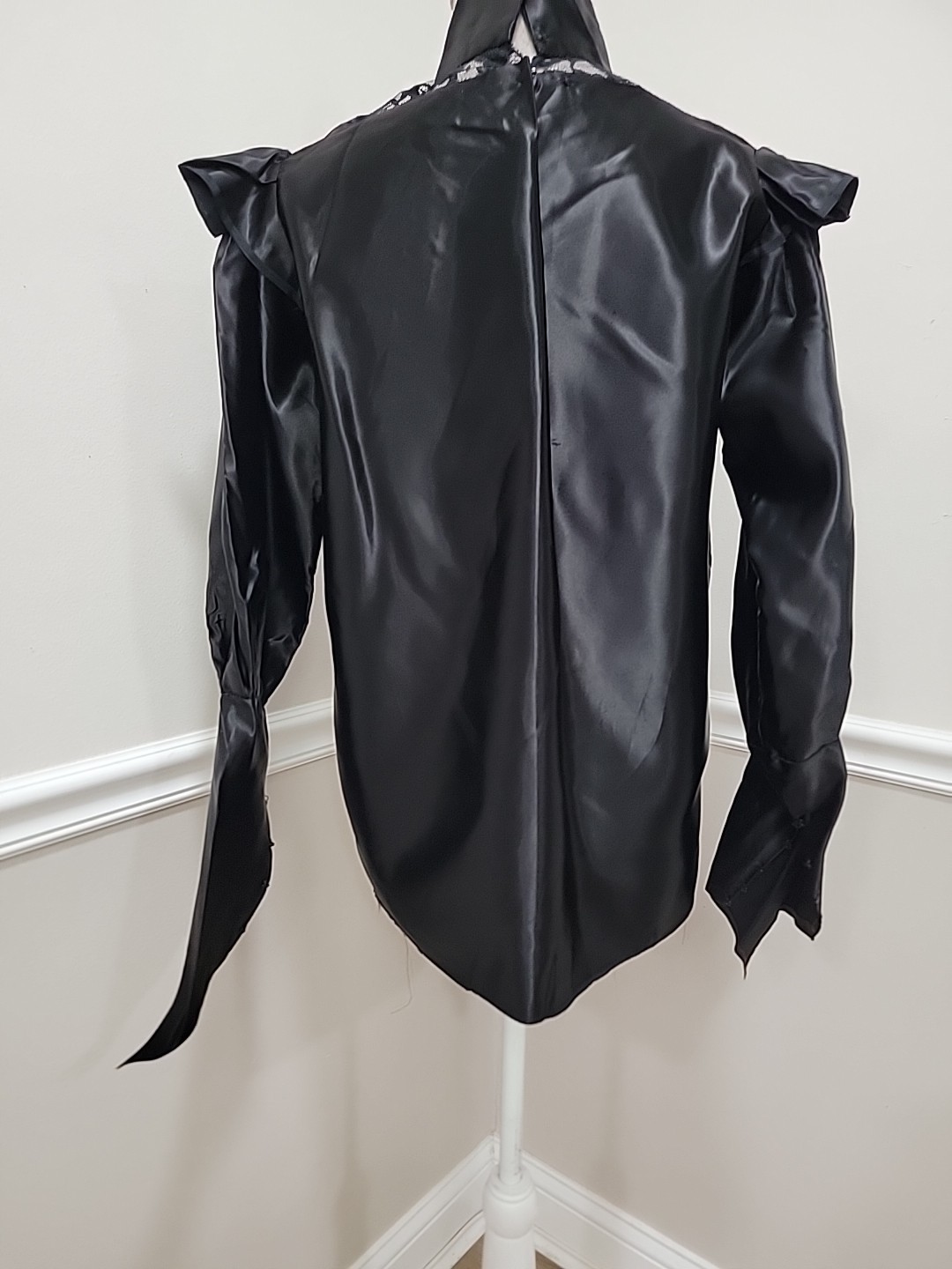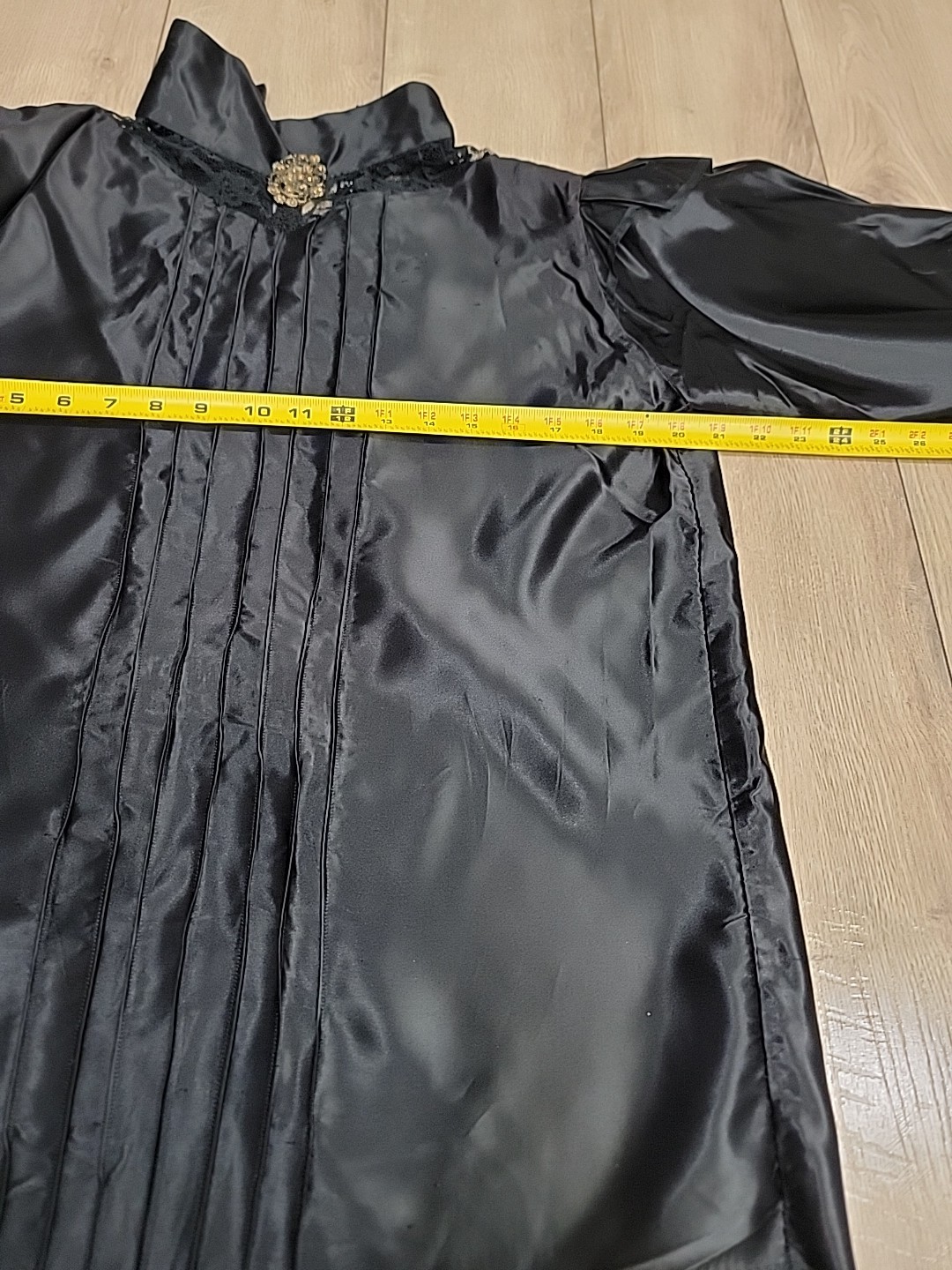 как выглядит Antique Victorian Black Satin Bodice Blouse High Collar Lace Yoke 1890s фото